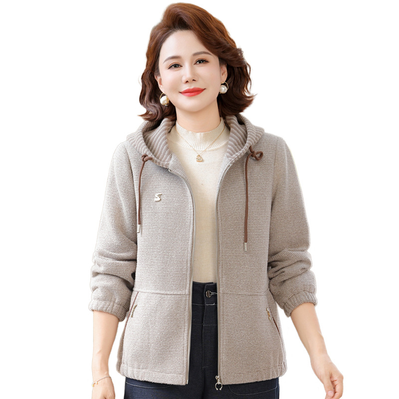 中年妈妈秋装洋气连帽外套2025新款中老年女装春秋夹克休闲上衣