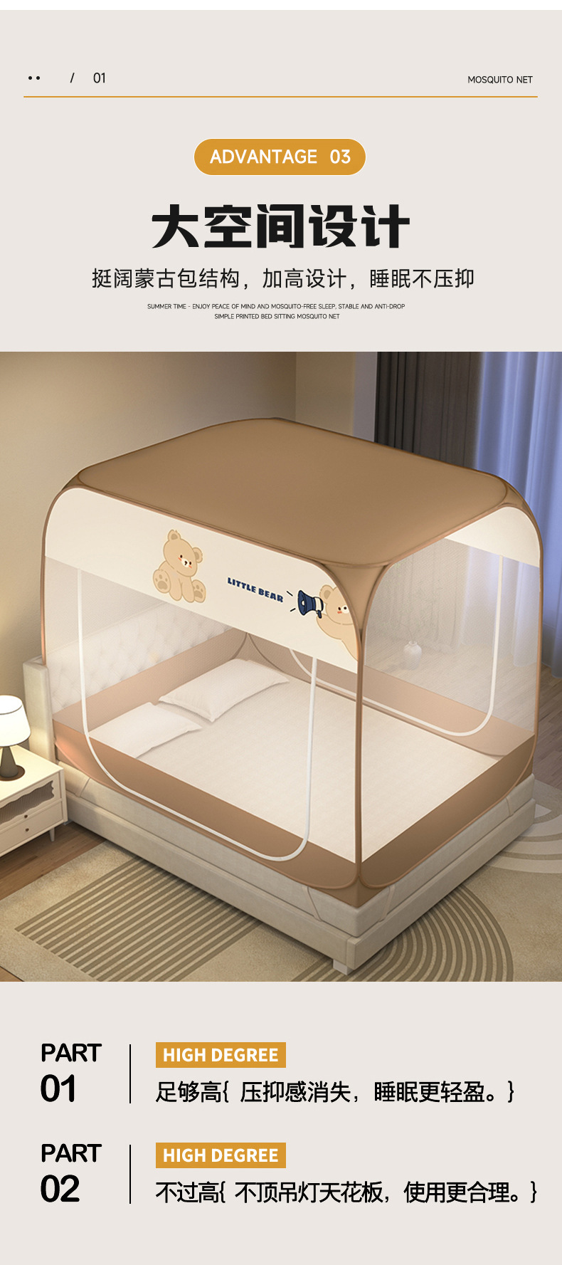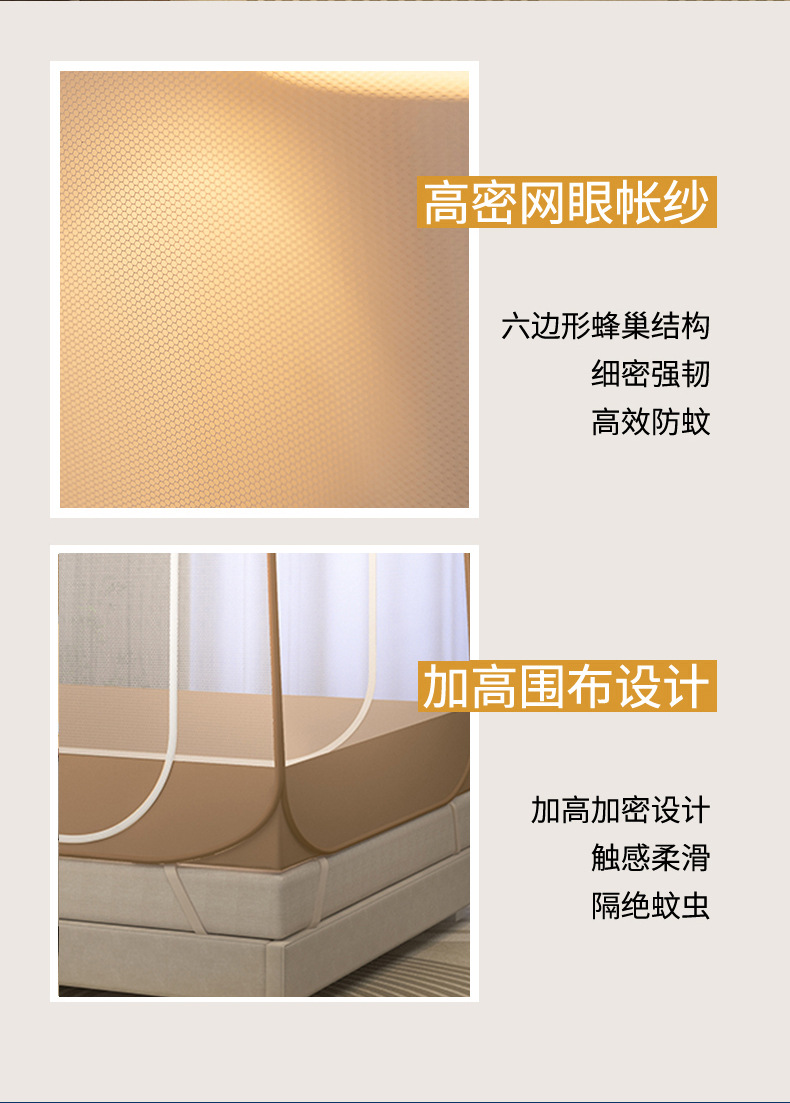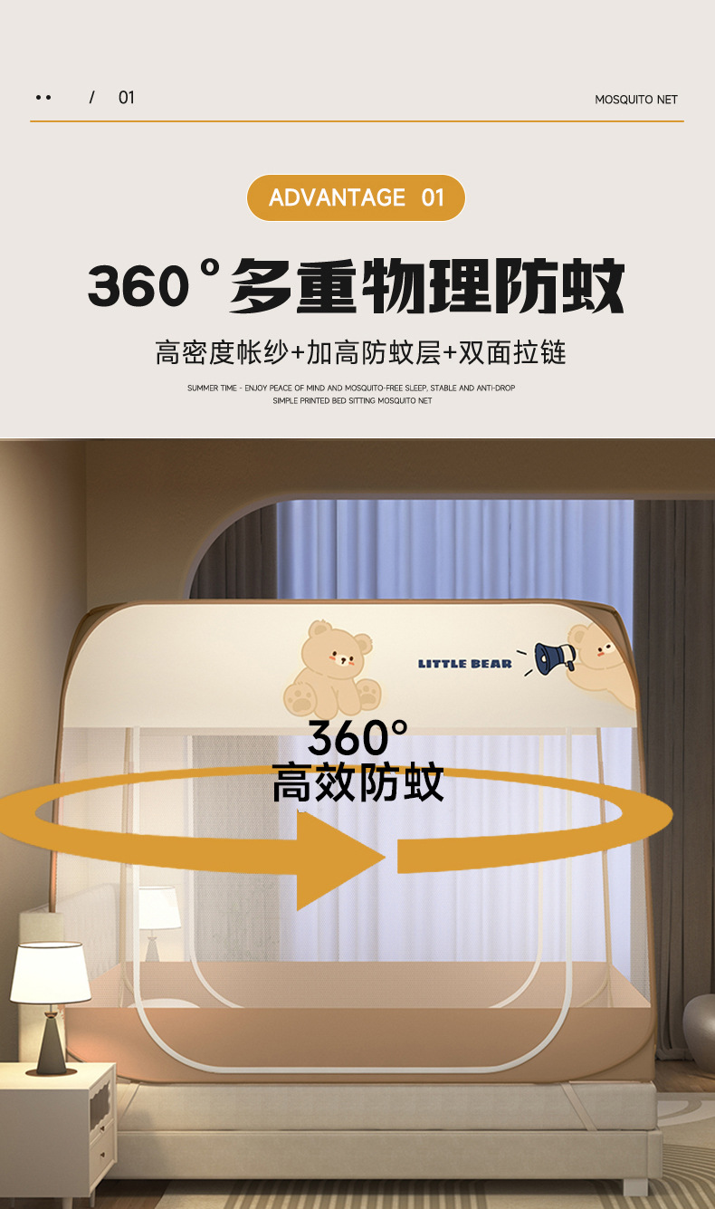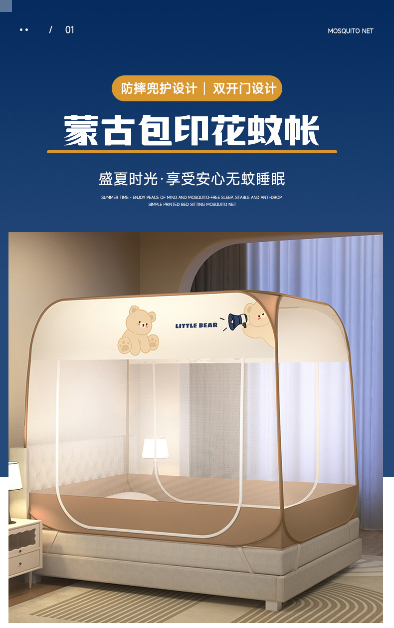 新型モンゴル包蚊帳、設置不要、家庭用、落下防止、寝室用、強化・厚手、二重扉、直販