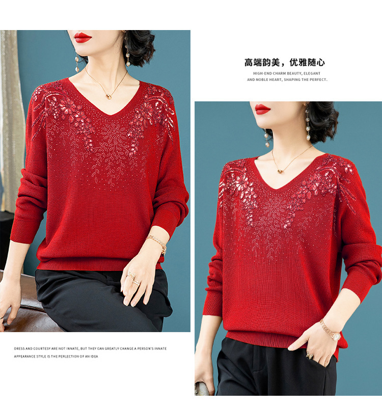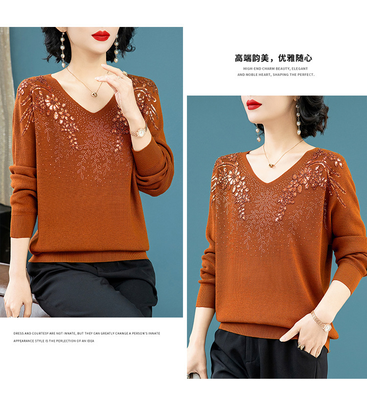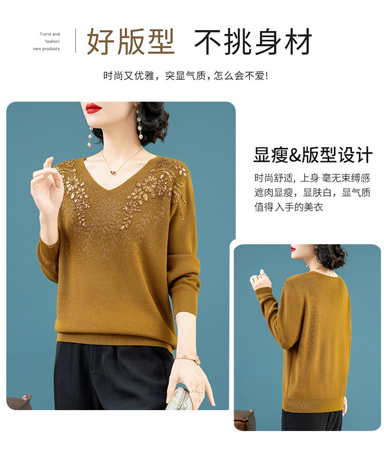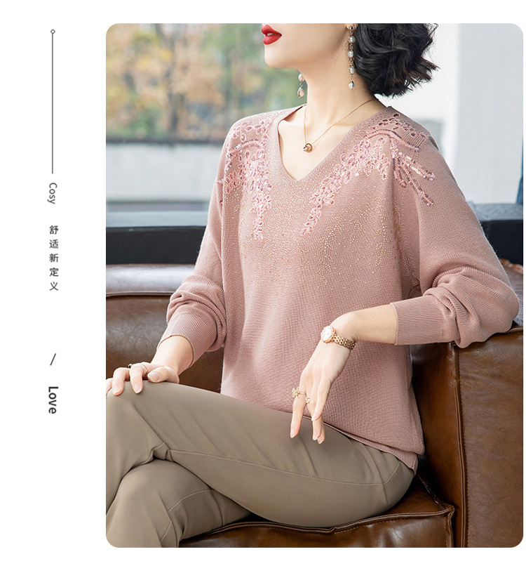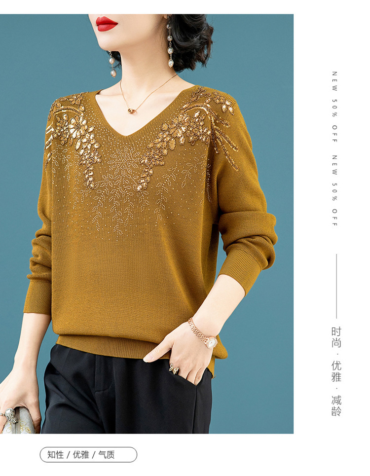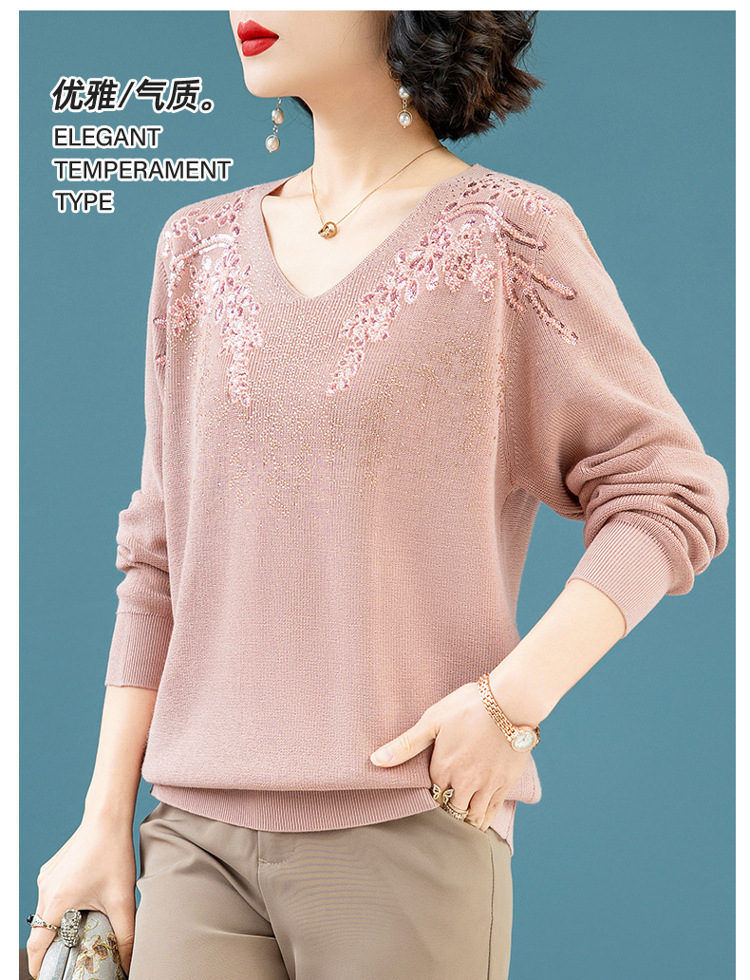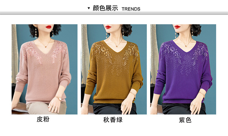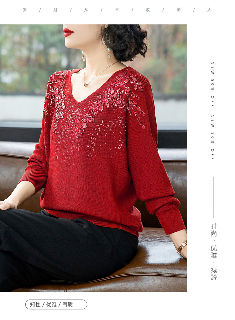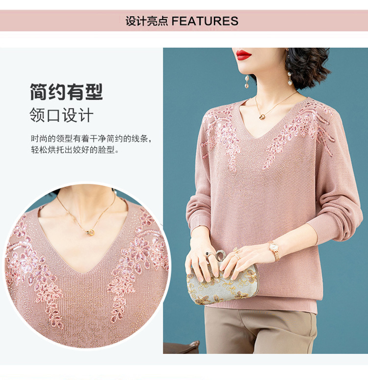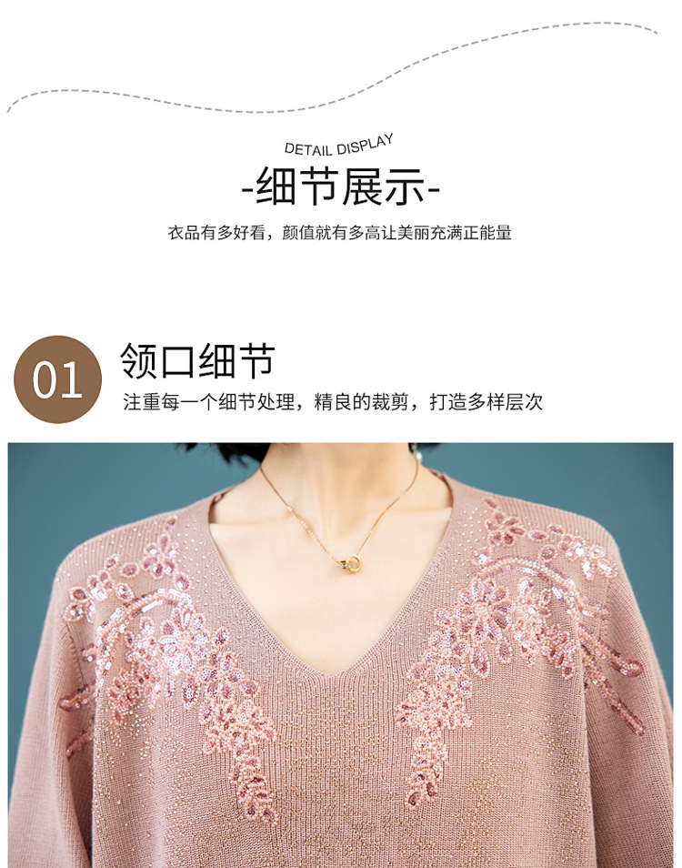 2025年秋冬新款冰丝针织毛衣重工秀珠长袖上衣中老年妈妈开衫圆领