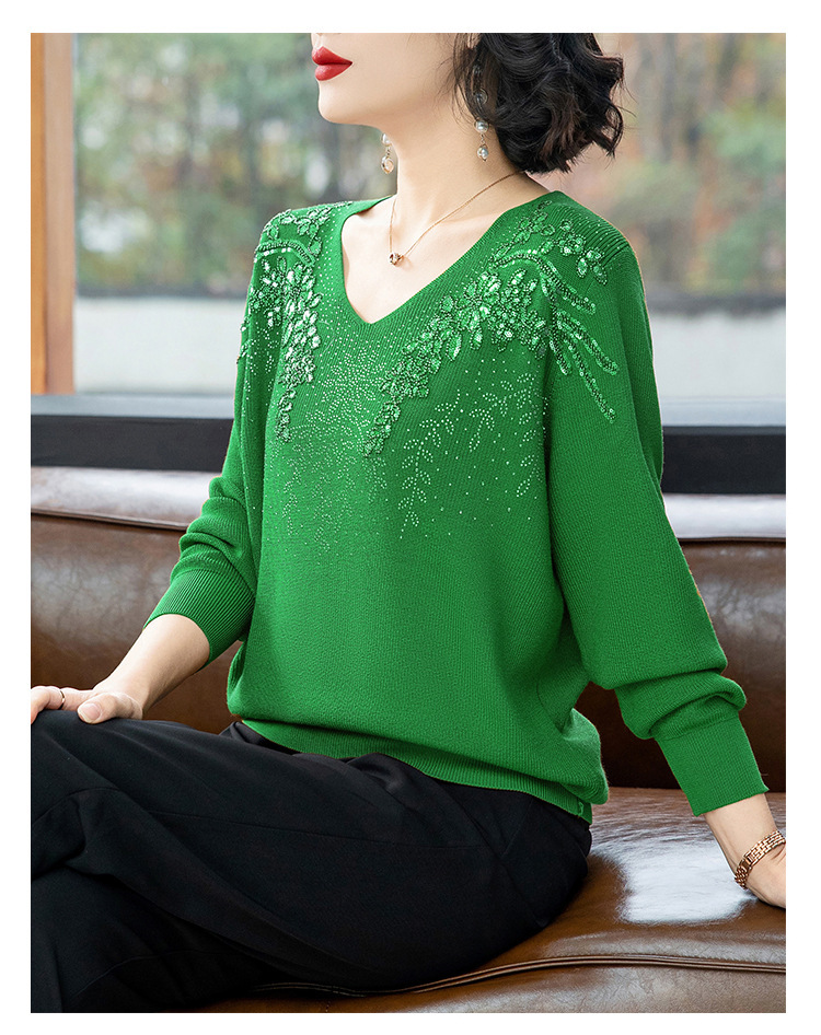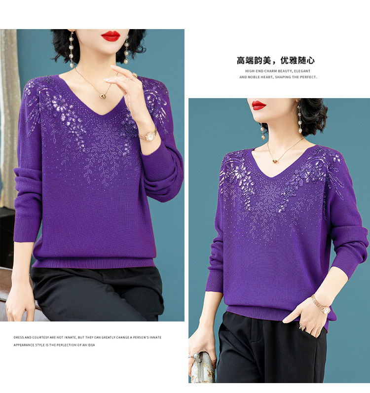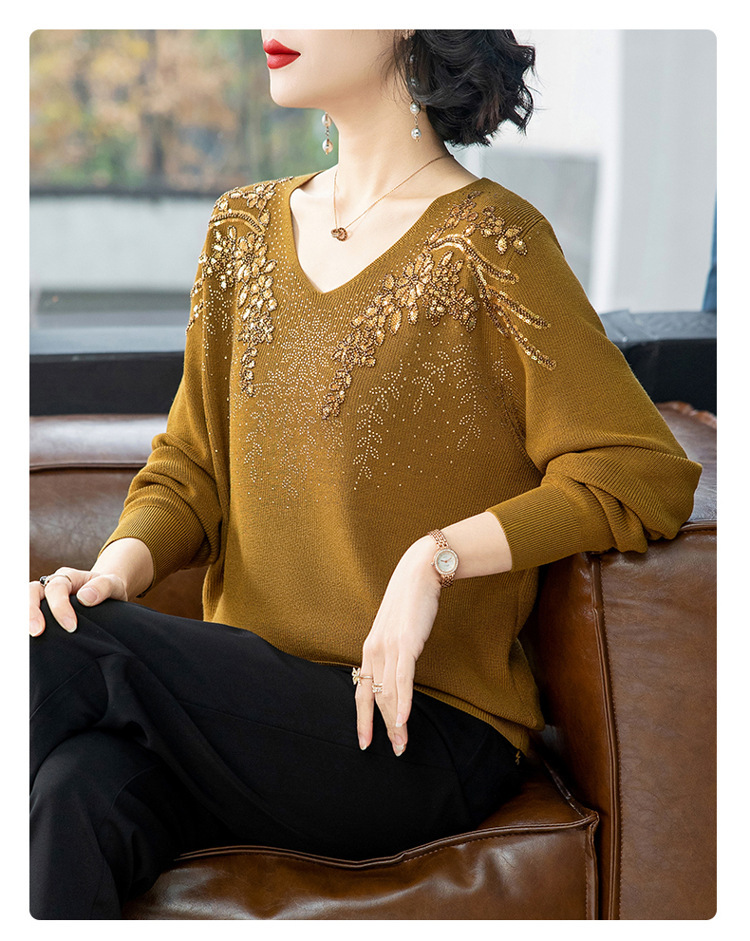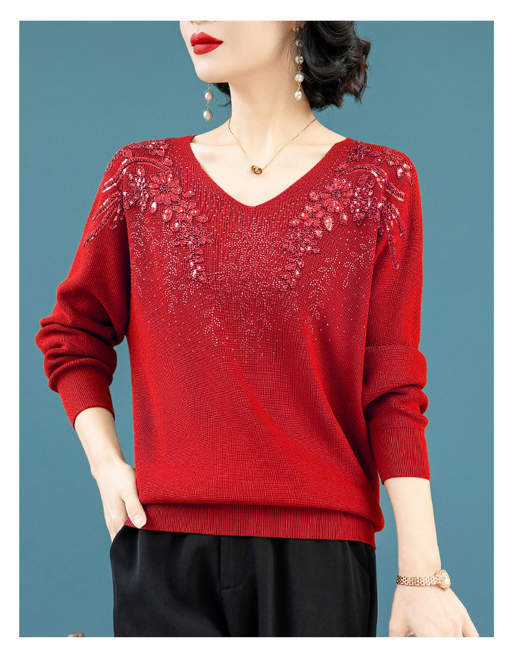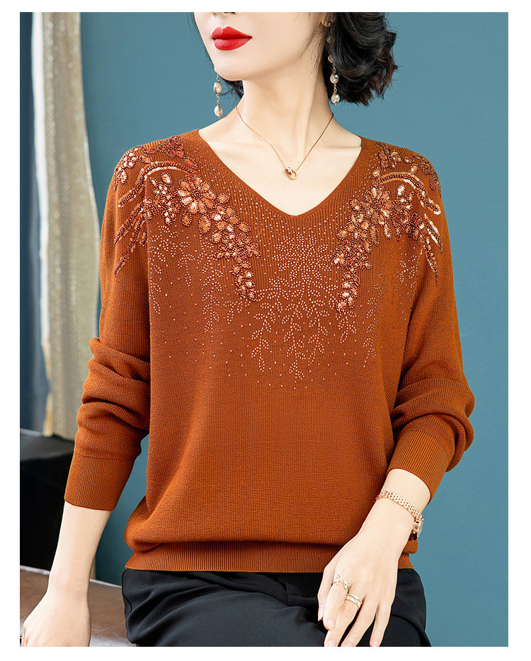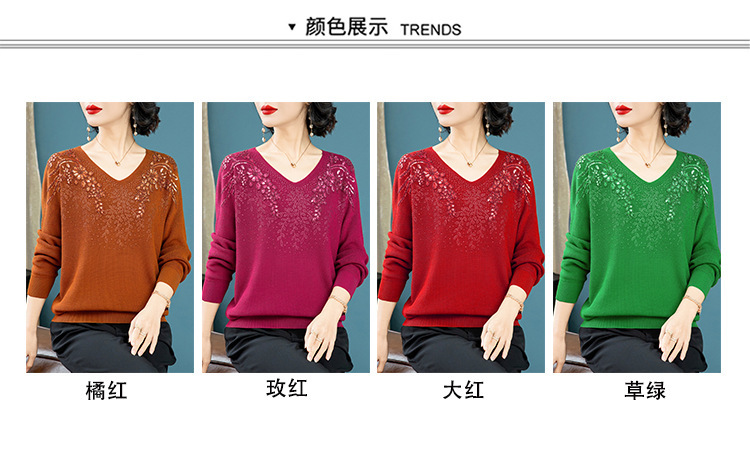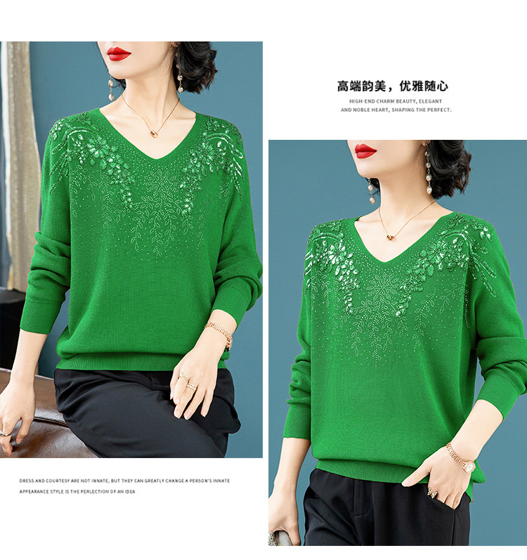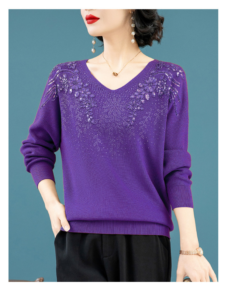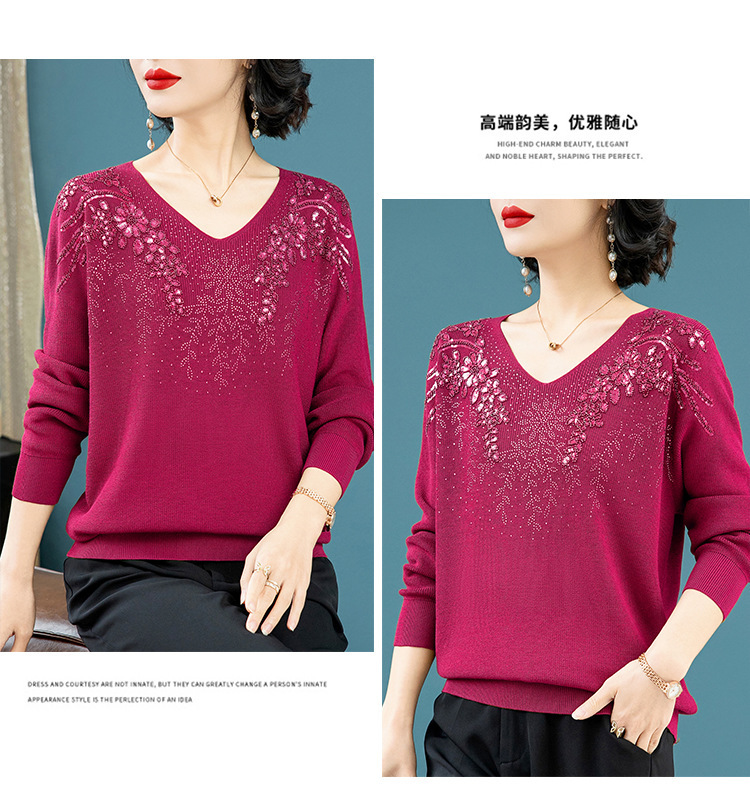 2025年秋冬新款冰丝针织毛衣重工秀珠长袖上衣中老年妈妈开衫圆领