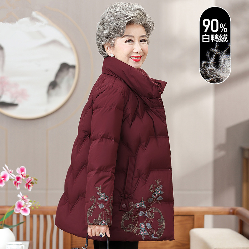 簡溪おばあちゃんの冬用ダウンジャケット レディース 2025年新作 お年寄りのお母様向けのお祝い冬服 中高年女性用冬コート