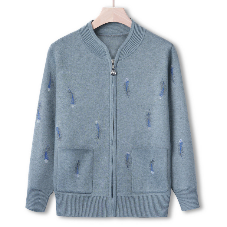 源工場製 母親向け春秋ニットトップス おばあちゃんセーター 女性用コート 中高年女性用長袖カーディガン