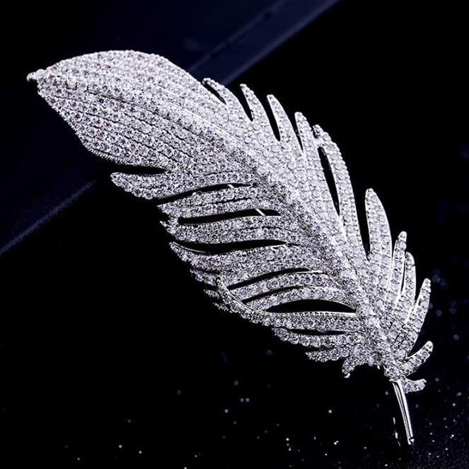 2025年新作気質ジルコン羽毛ブローチ女性スーツチャイナドレスピンアクセサリー高級感防走光胸花