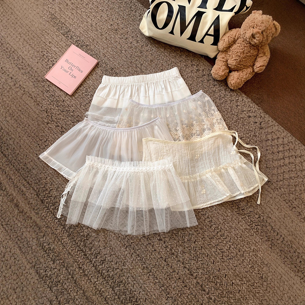 厂家直销2025春季新款女装百搭A字裙纯色蕾丝网格绑带屁帘甜美半