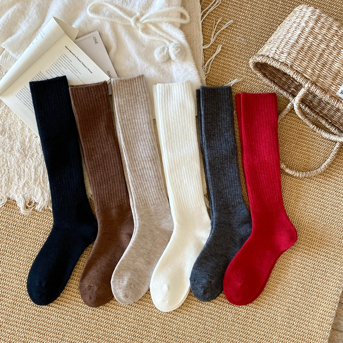 羊毛小腿袜子女加厚保暖中筒袜日系简约纯色百搭显瘦长筒堆堆袜