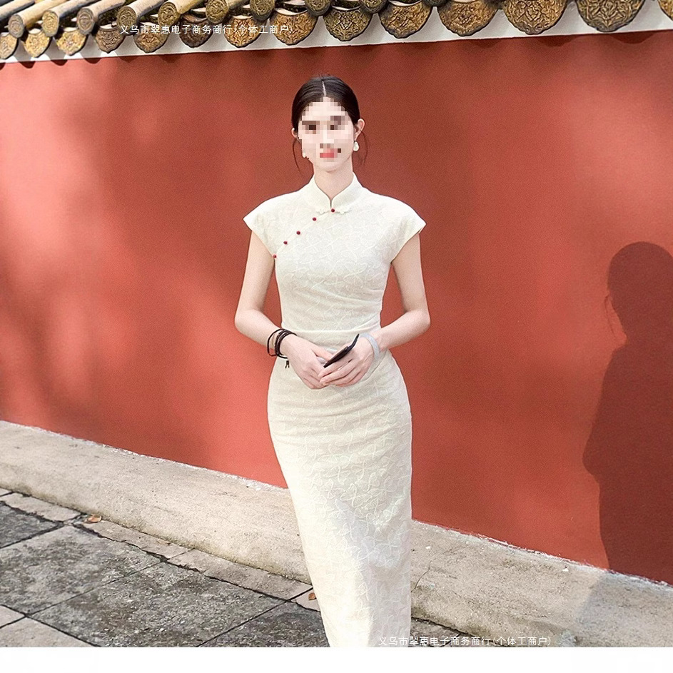 蝶ジャカード改良全包辺チャイナドレス女性2025夏婚約国風新中国式ワンピース