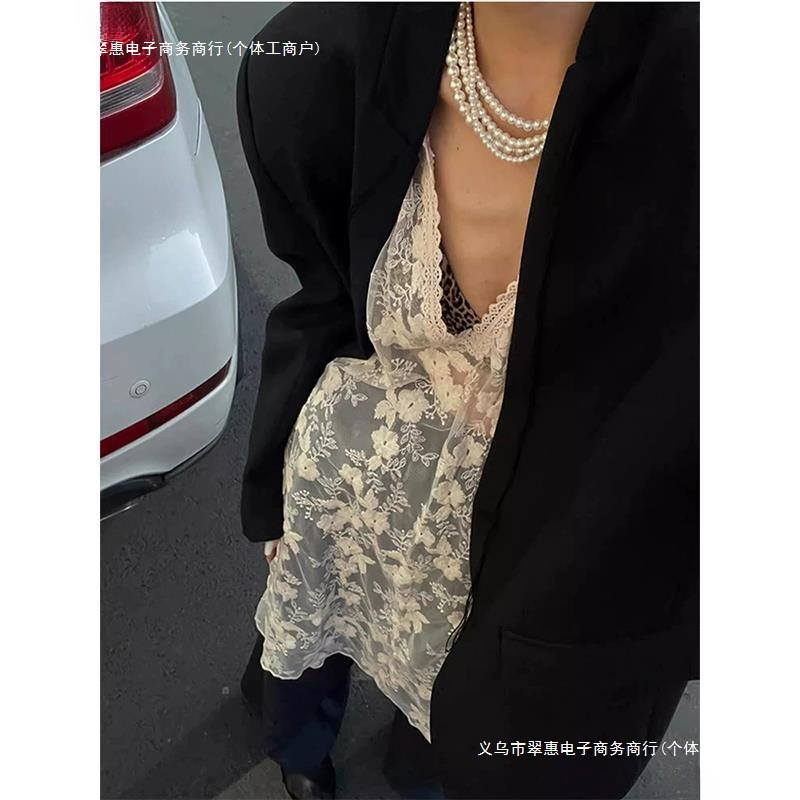 フレンチスイートインかぎ針編みVネックレースベストドレスアプリコットベストドレスレースボトムドレス