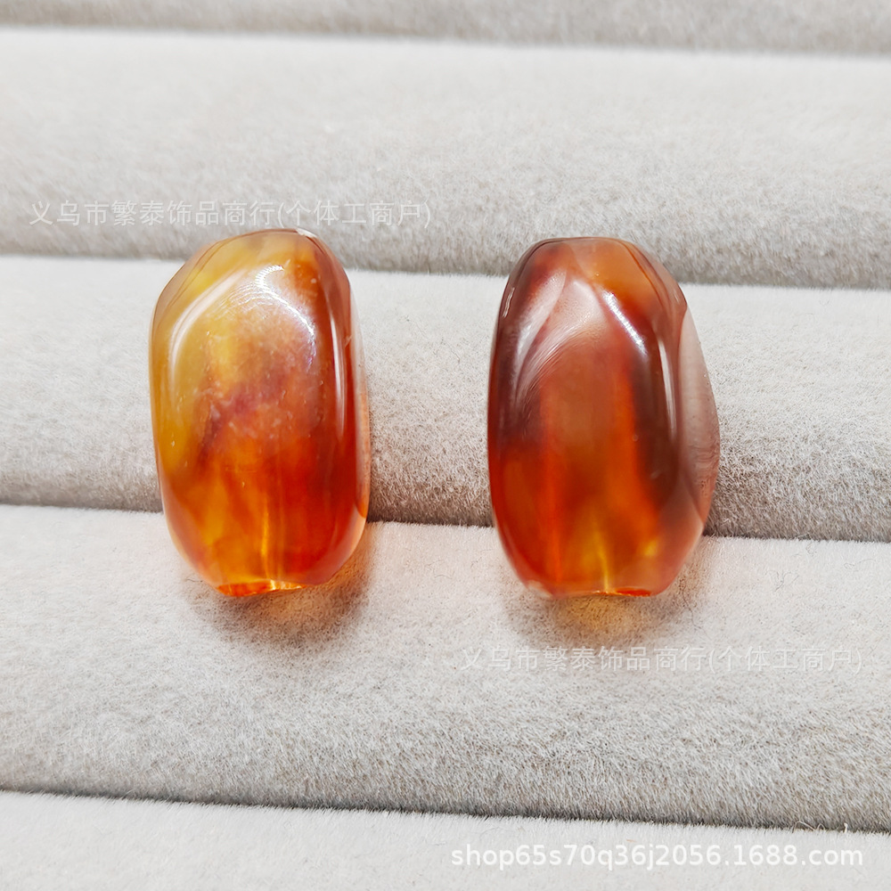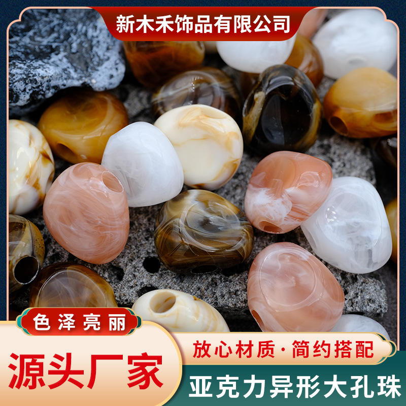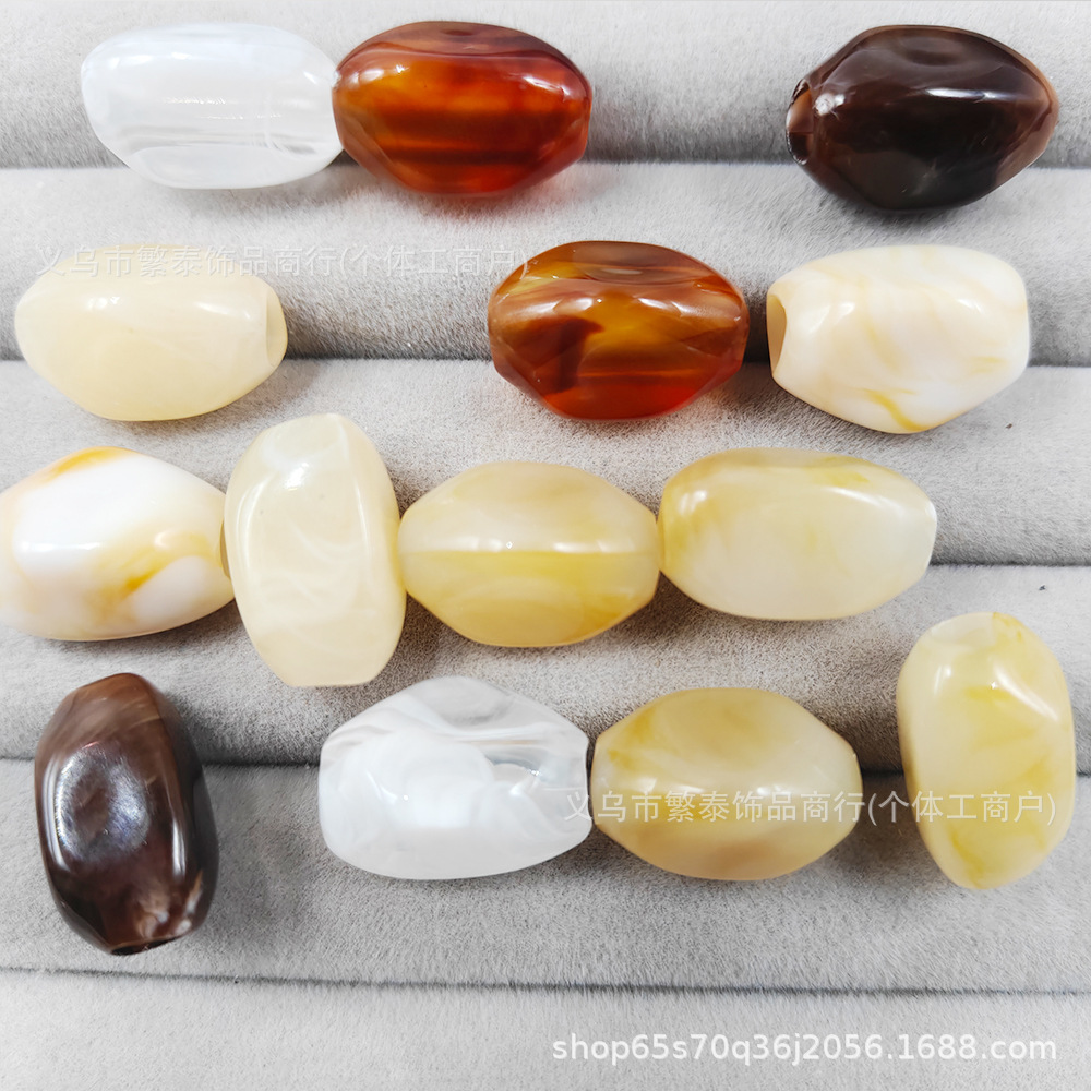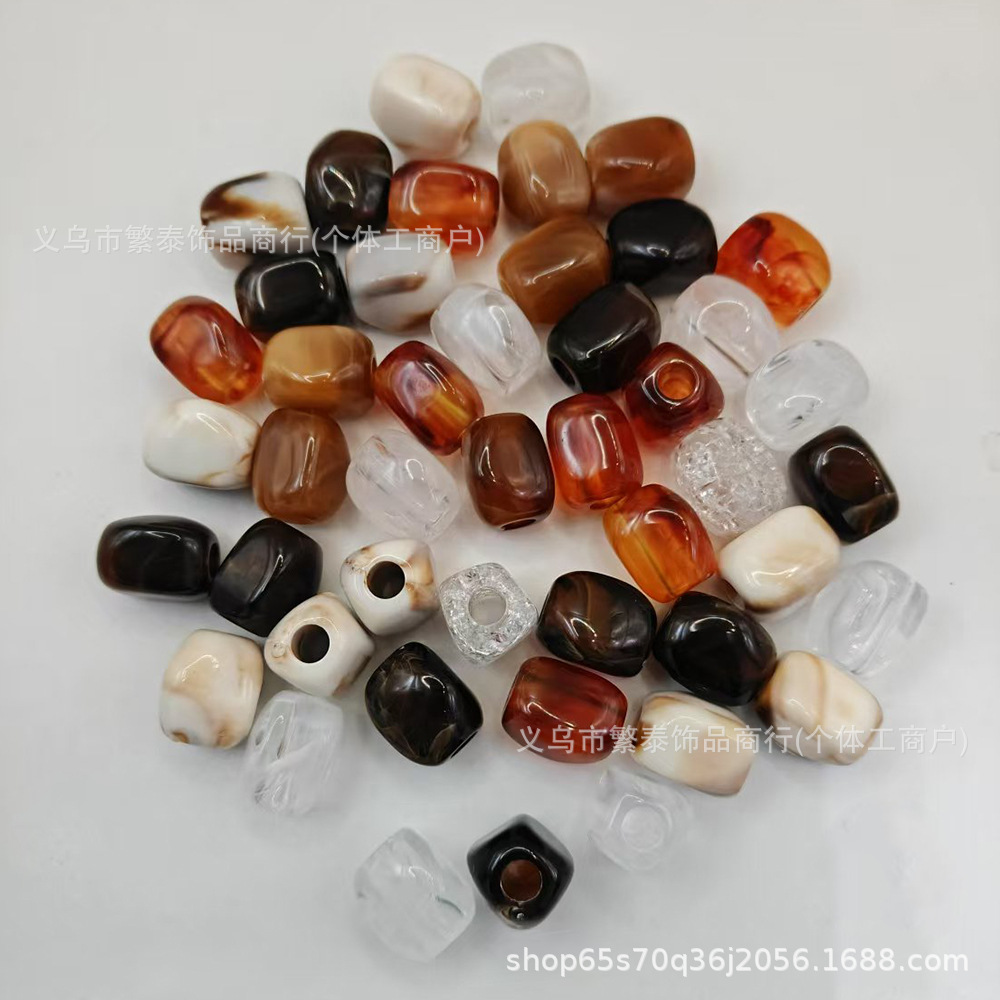 亚克力DIY手工大孔不规则异形穿孔桶散串珠复古流纹琥珀饰品配件