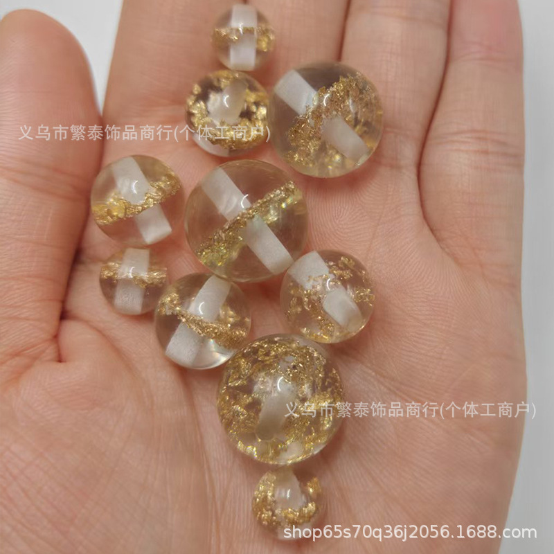 9/12/16mm国潮金箔砕花透明散珠樹脂ボール手作りdiyブレスレットアクセサリー部品
