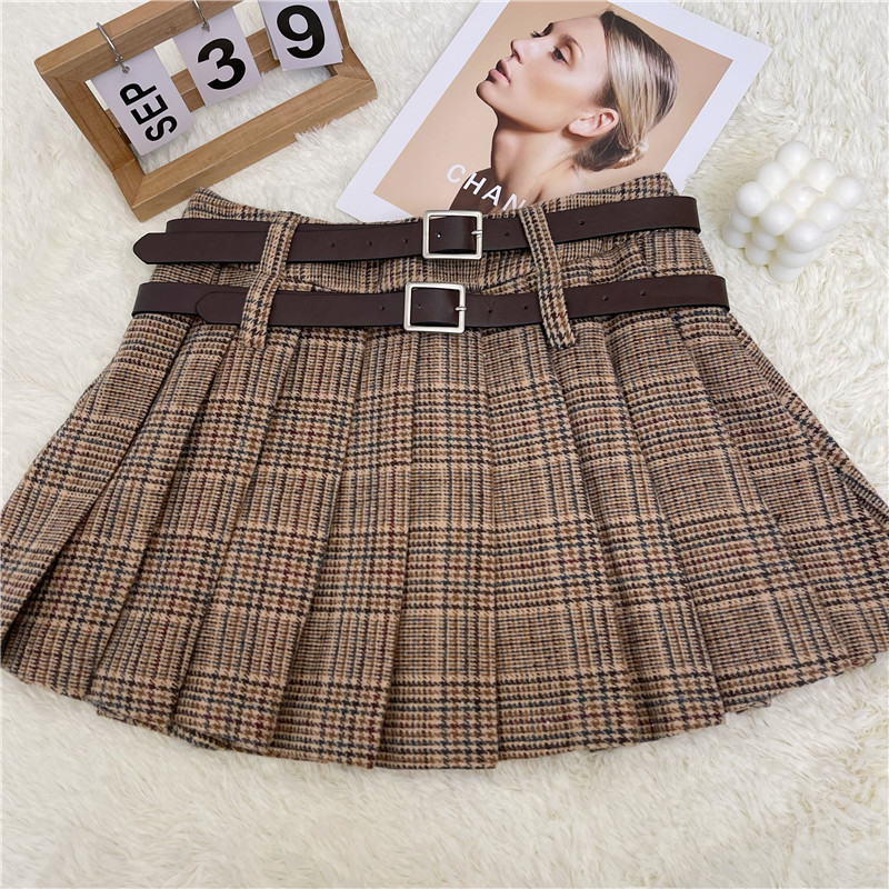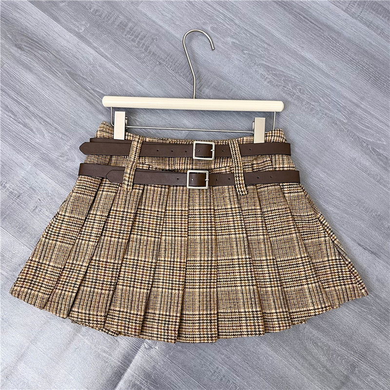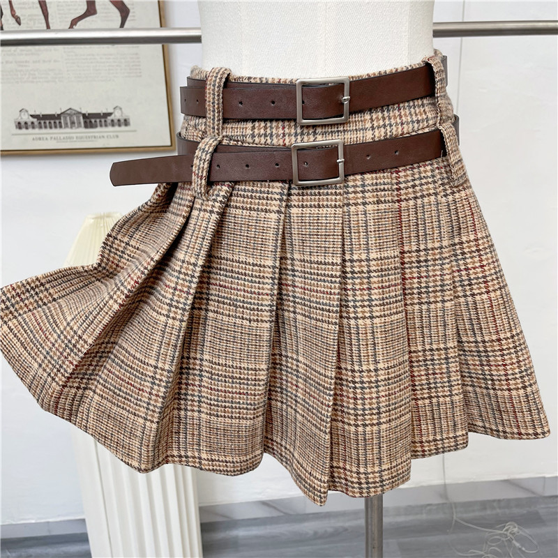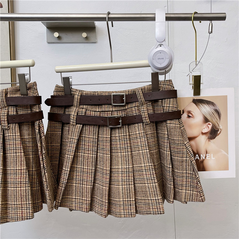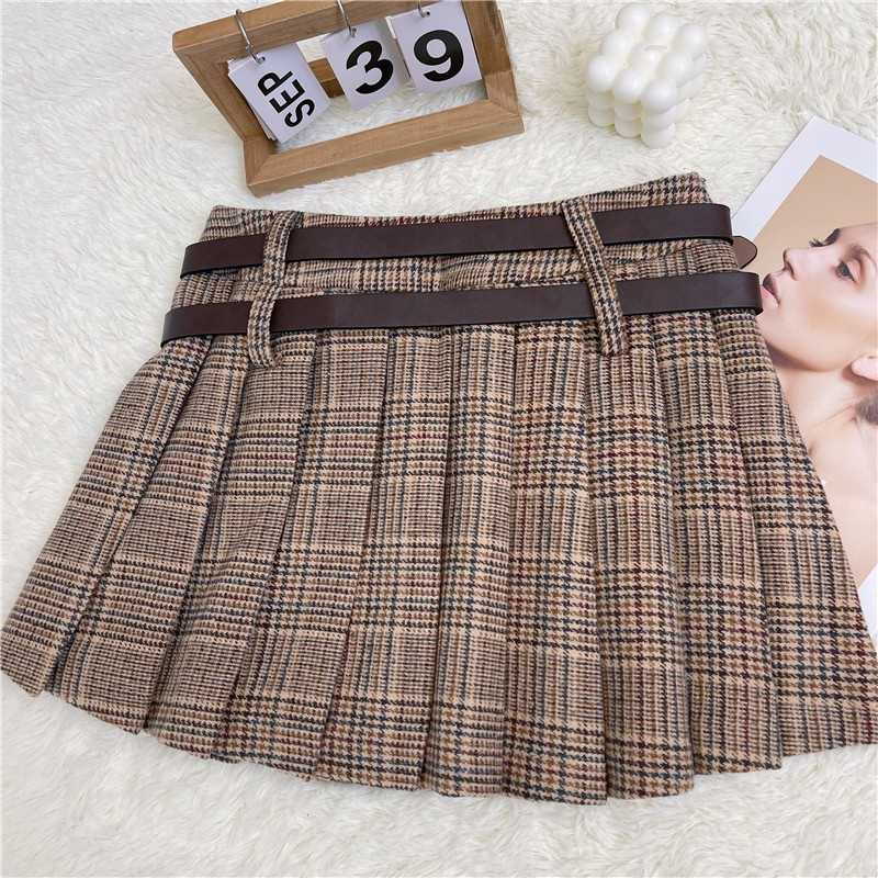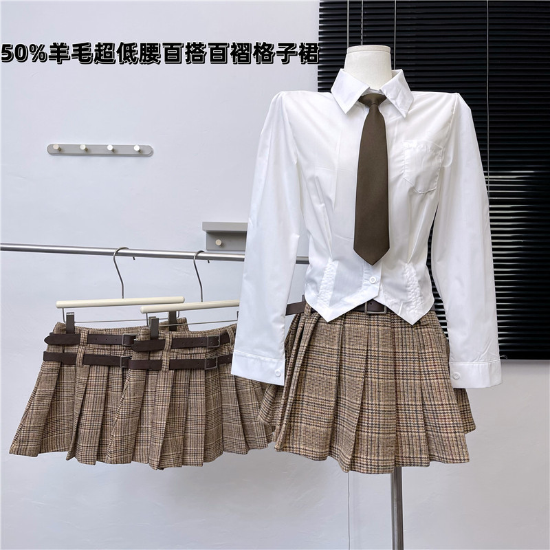 チェック柄プリーツスカート,シャツネクタイ