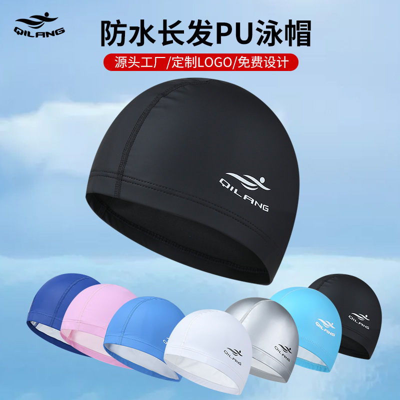 水泳帽男性防水布帽は首を絞めない女性長髪耳保護PU帽成人訓練水泳帽はロゴをカスタマイズできる