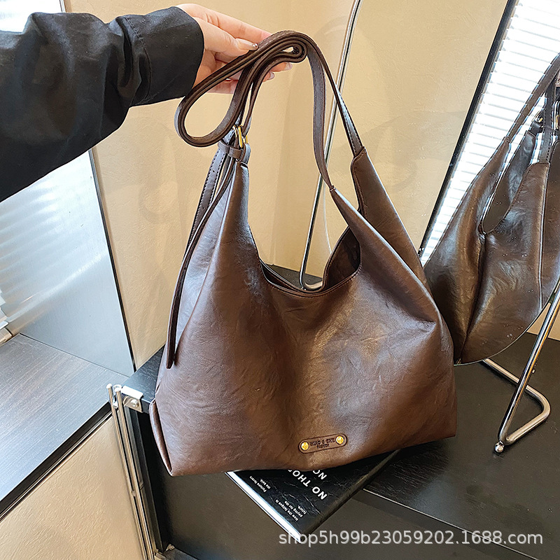 时尚复古纯色大容量单肩包新款高级感软面潮流斜挎包质感托特包女
