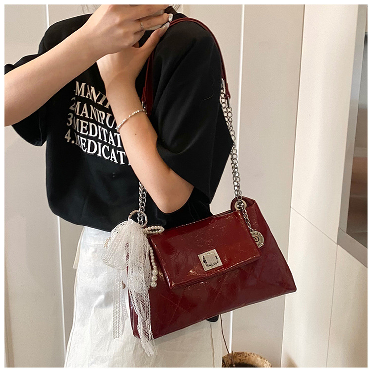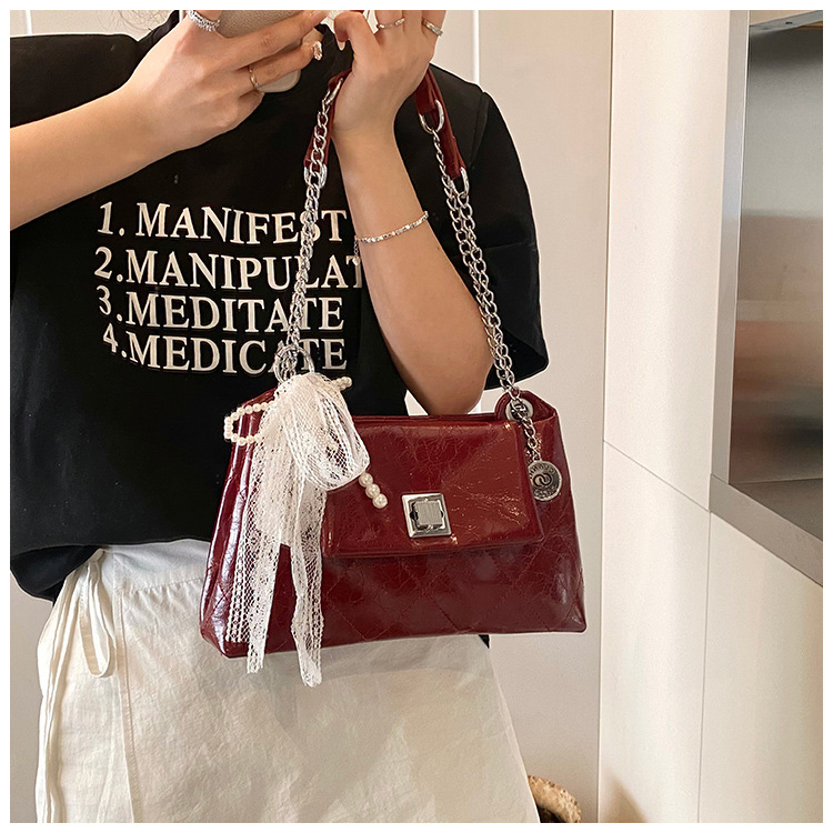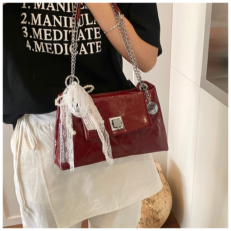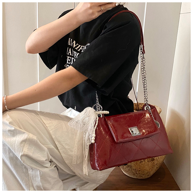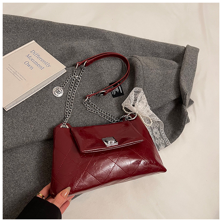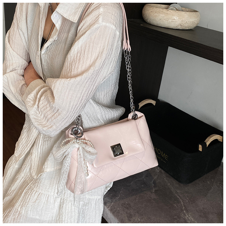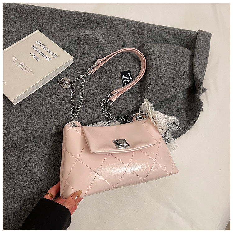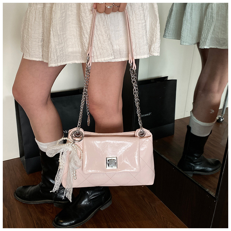 菱格チェーンバッグ女性2025新型春夏小衆デザインシングルショルダーバッグ機関車カバンカジュアル脇下カバン