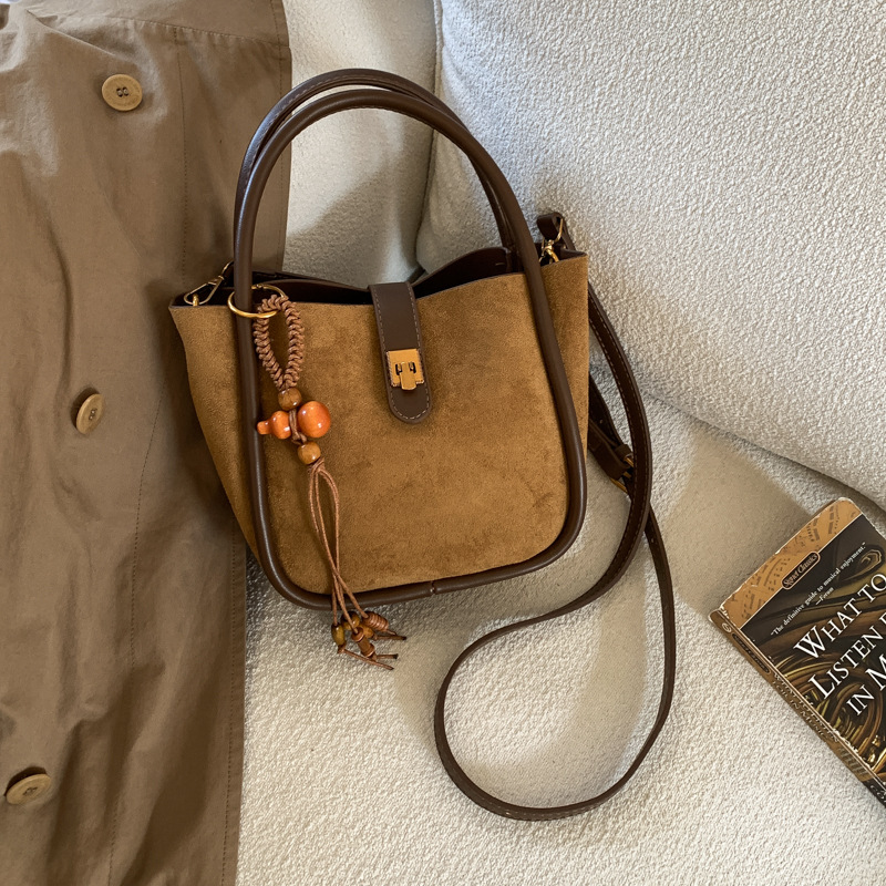 秋冬のレトロな砂の小さい包みの女性の2024の新型の百合の斜めのショルダーバッグのファッションのスエードの皮の毛の手提げのバケツの包み