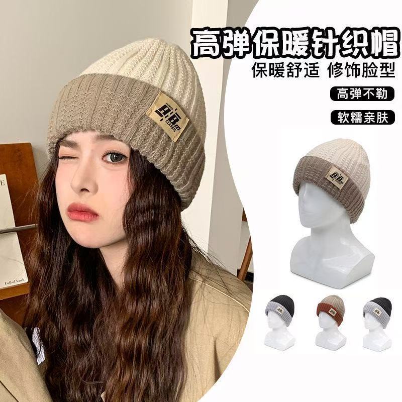 秋冬帽子堆堆毛线帽韩版百搭保暖护耳冷帽一帽多带针织保暖女士帽