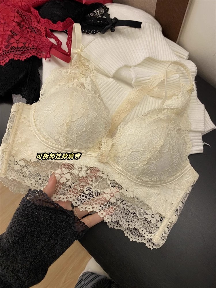 龙心2.0升级厚款法式纯欲挂脖蕾丝内搭内衣女小胸聚拢无钢圈文胸