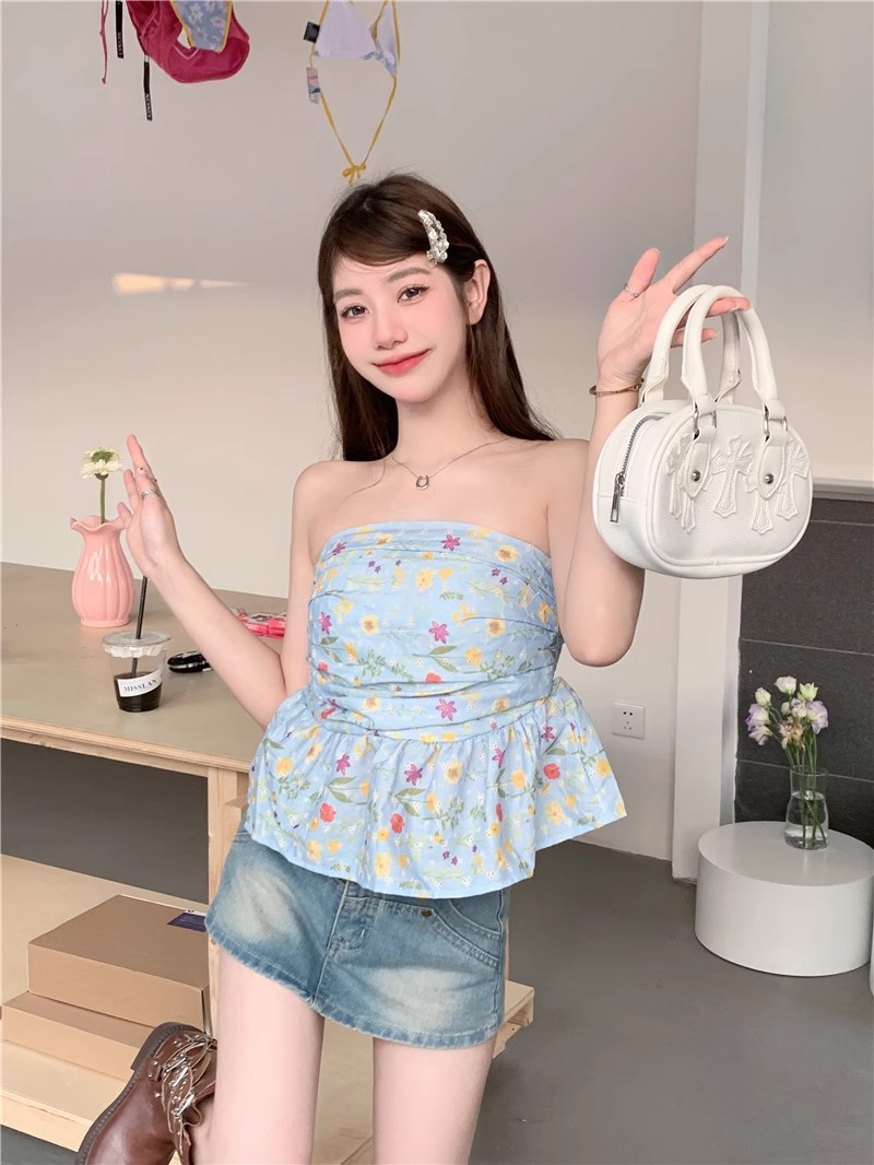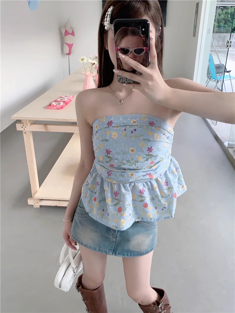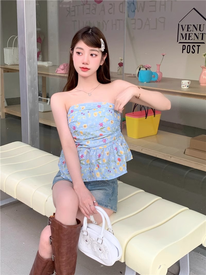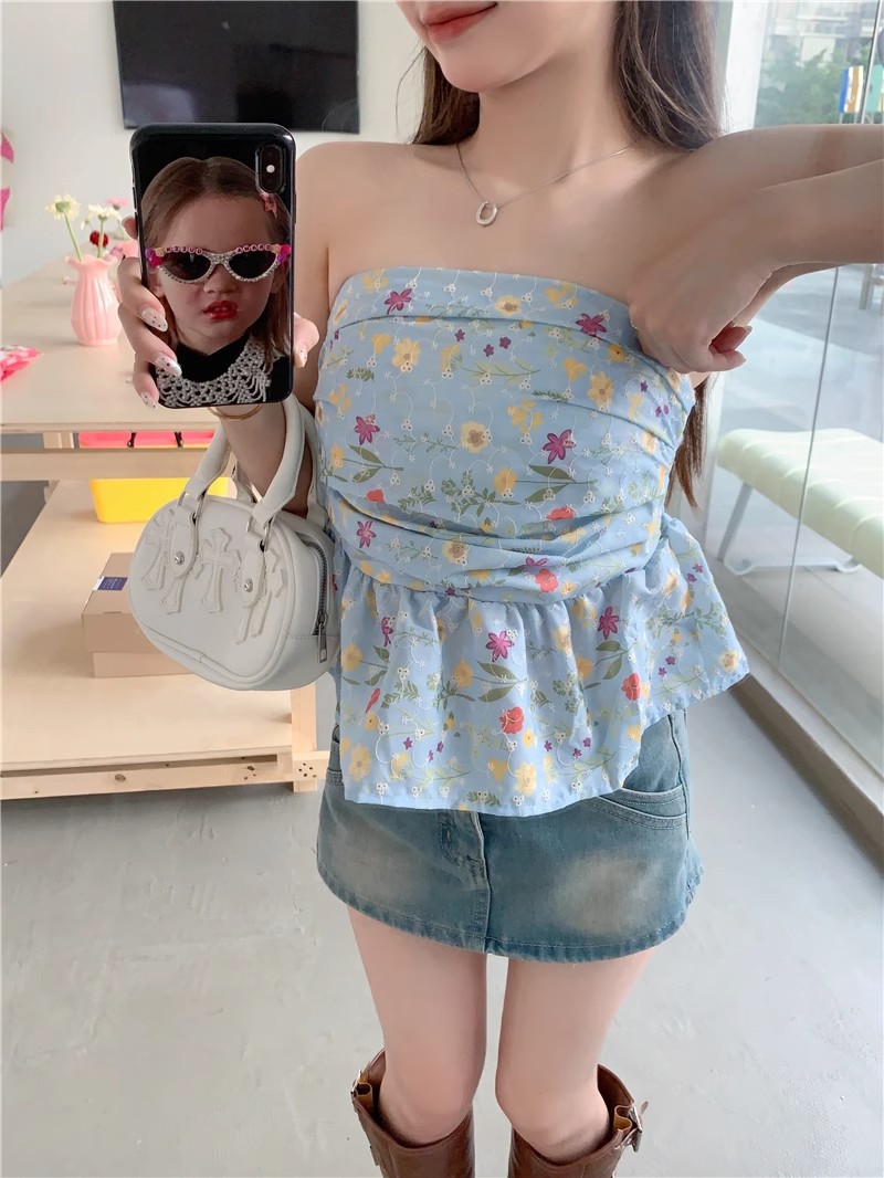 甘辛純欲風鉤編砕花袖なし胸ベスト女性夏は痩せている