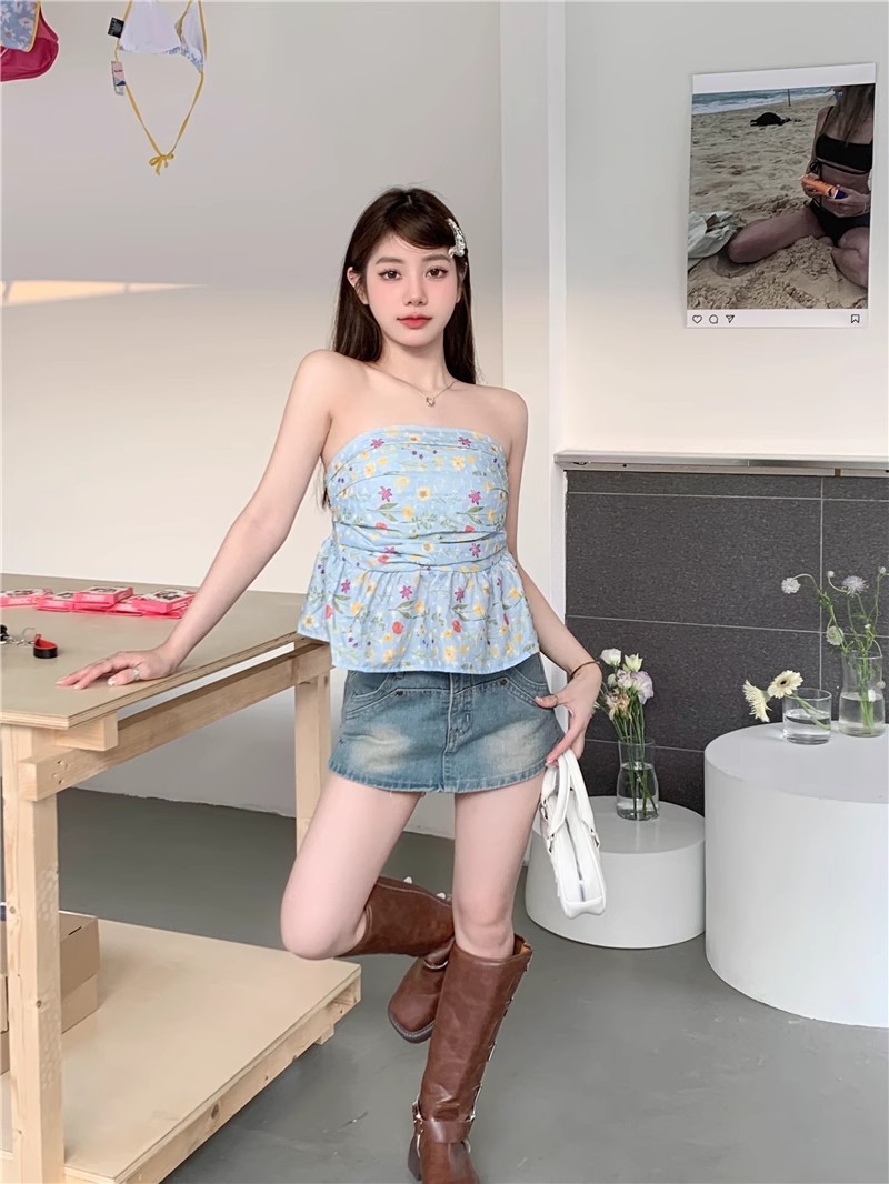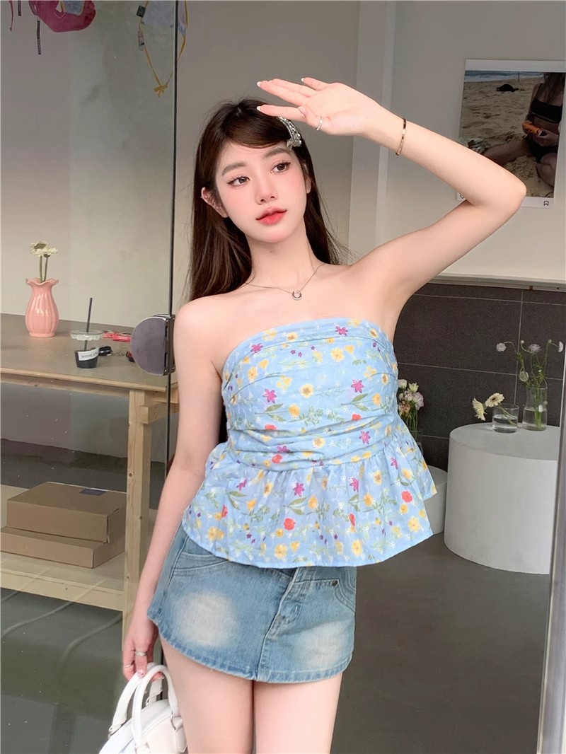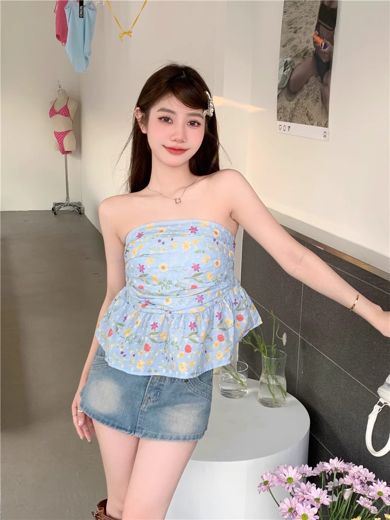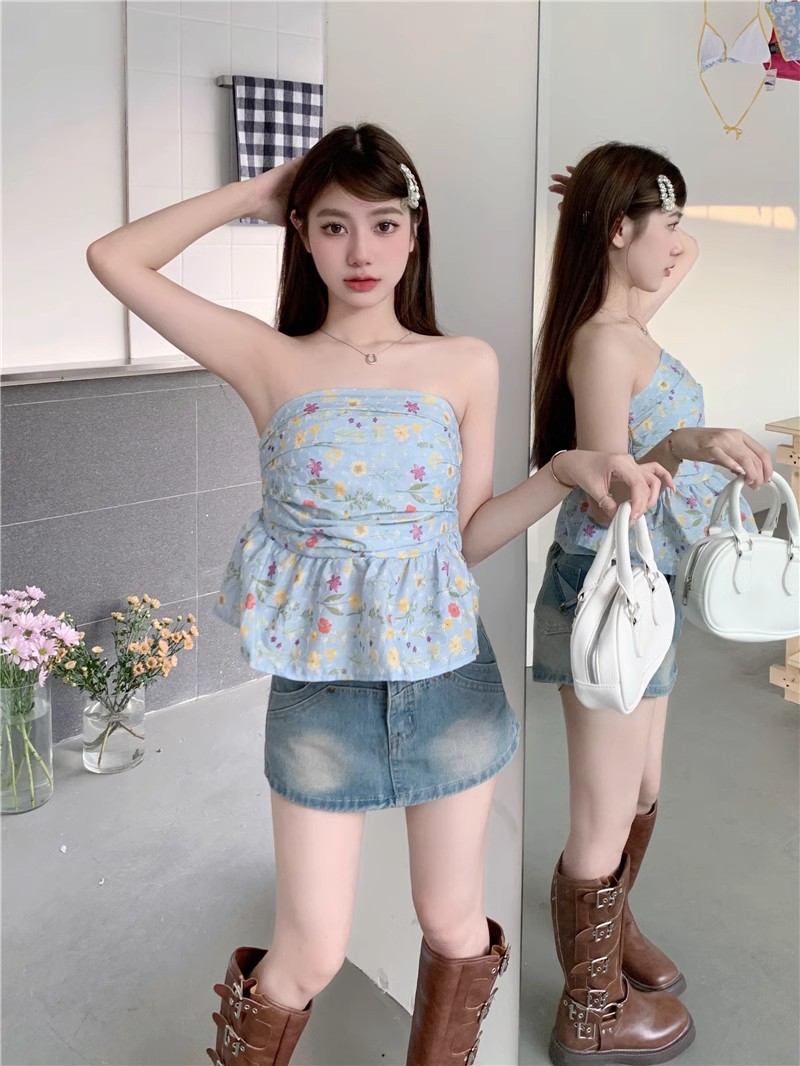 甘辛純欲風鉤編砕花袖なし胸ベスト女性夏は痩せている