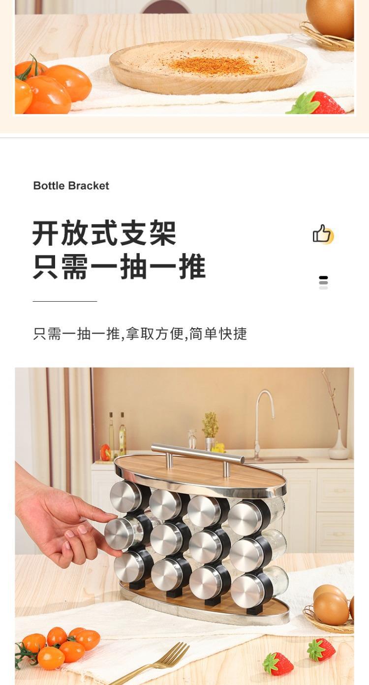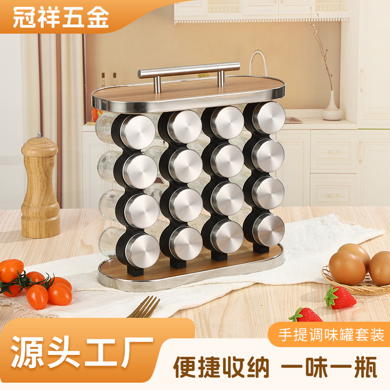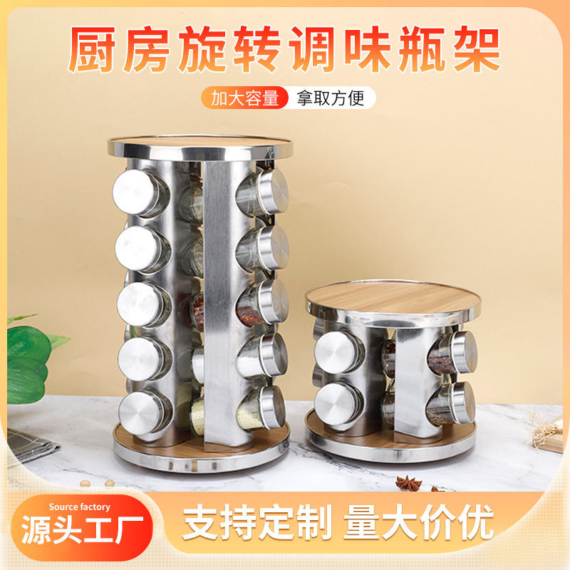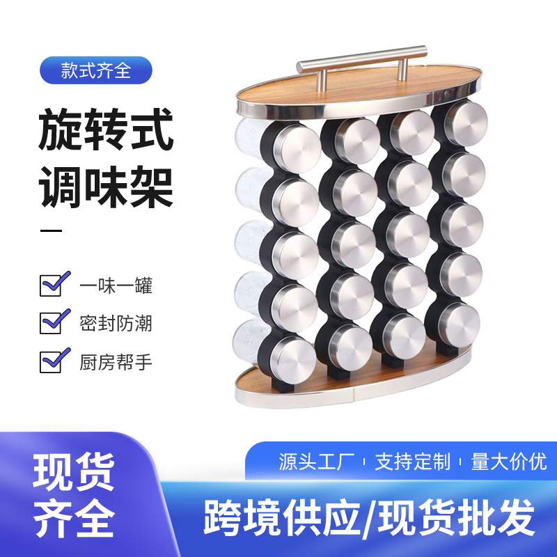国境を越えたステンレス製の手持ち香料棚木目丸角形調味料棚セット12/16/20頭調味瓶