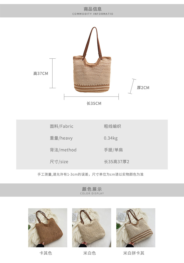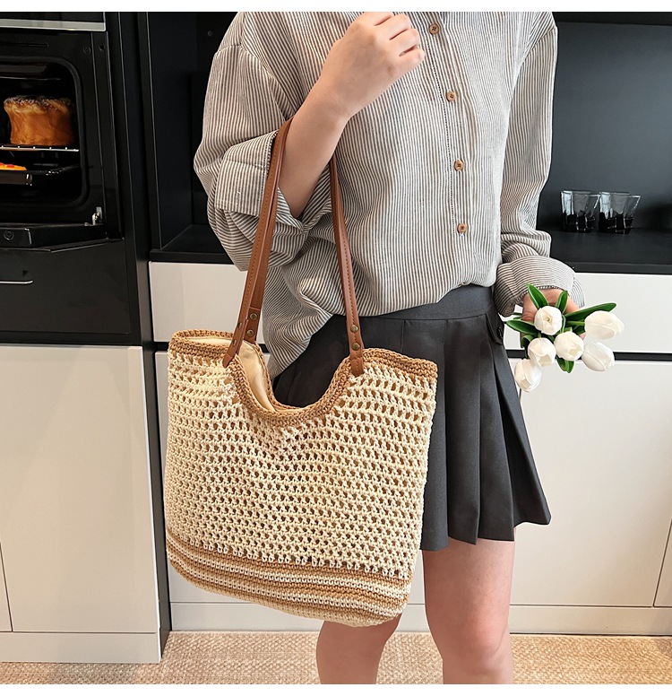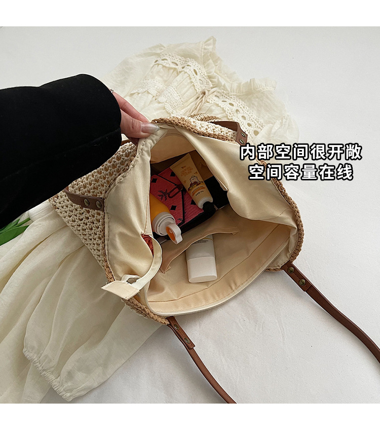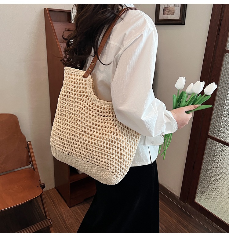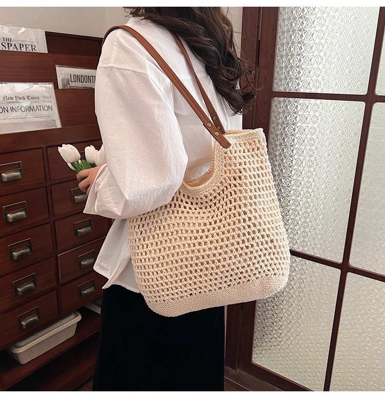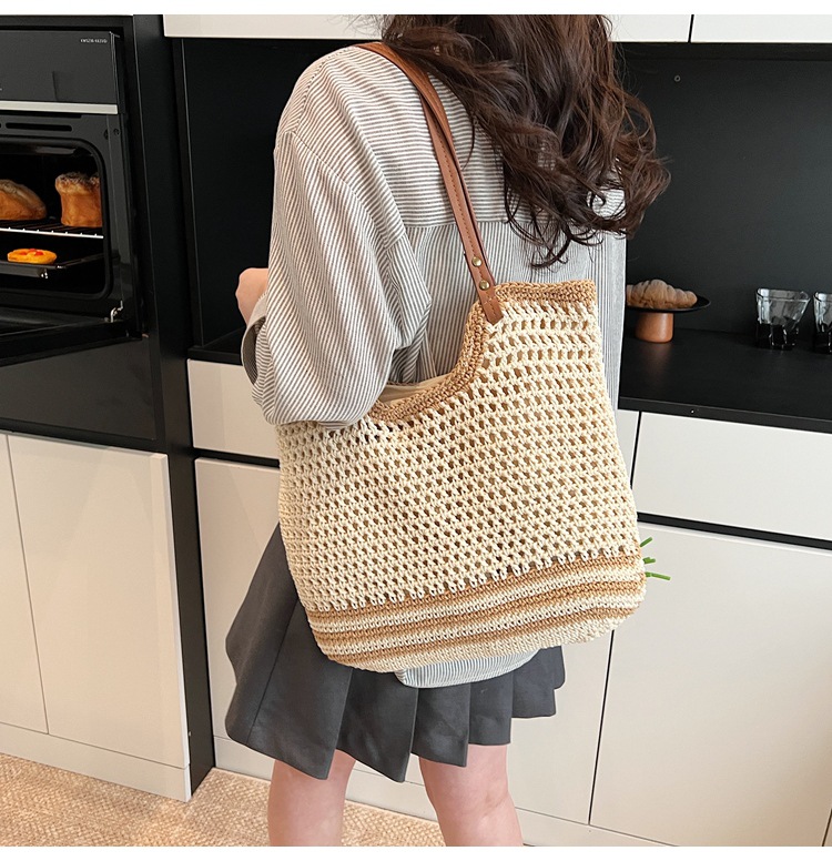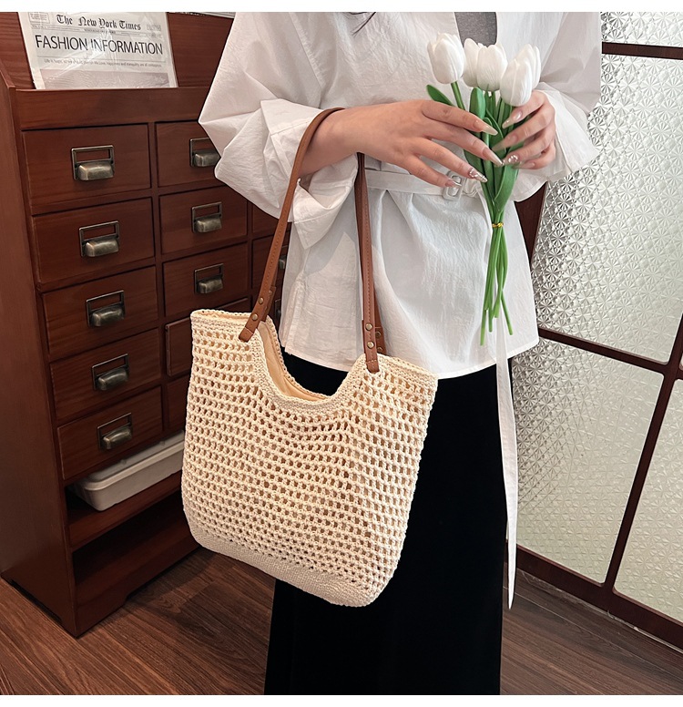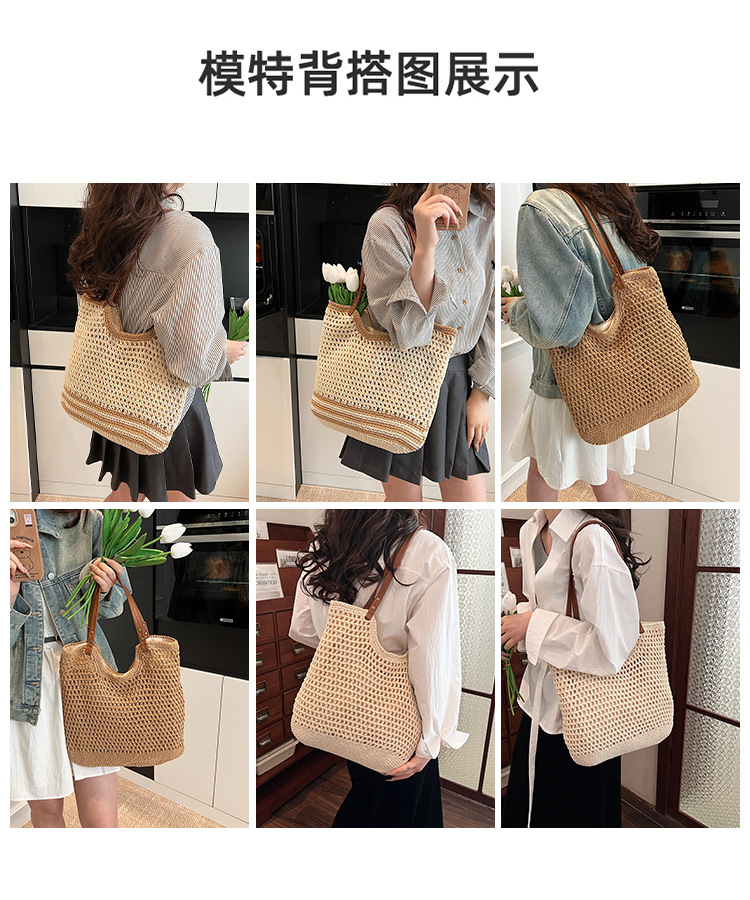 大容量バッグ女性2025新型百合シングル肩海辺休暇ビーチバッグ編み草編通勤バッグ