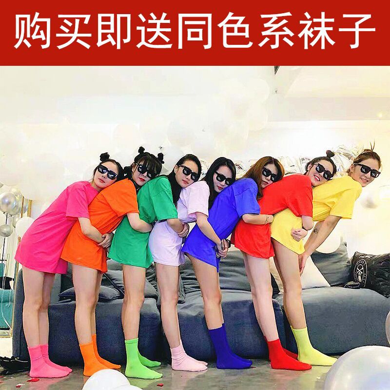 純色キャンディー虹色旅行パーティークラス服親友半袖tシャツ女性結婚式花嫁姉妹服潮