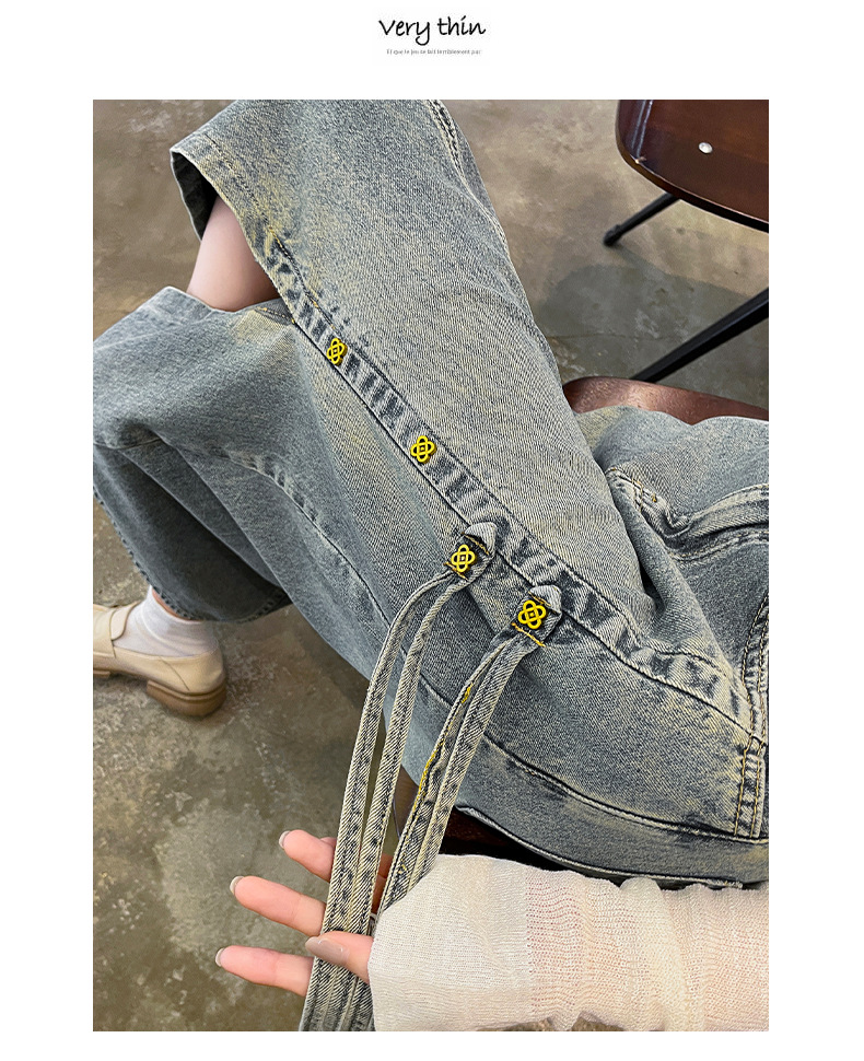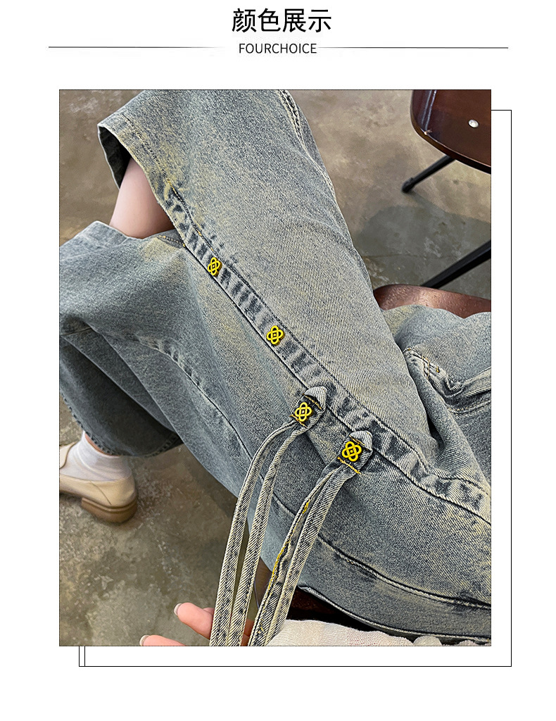 レトロな広脚のジーパンの女性の春秋の新型の小さい背の狭い版の高腰はやせているまっすぐな筒のカジュアルなモップのズボンの女性を現します。