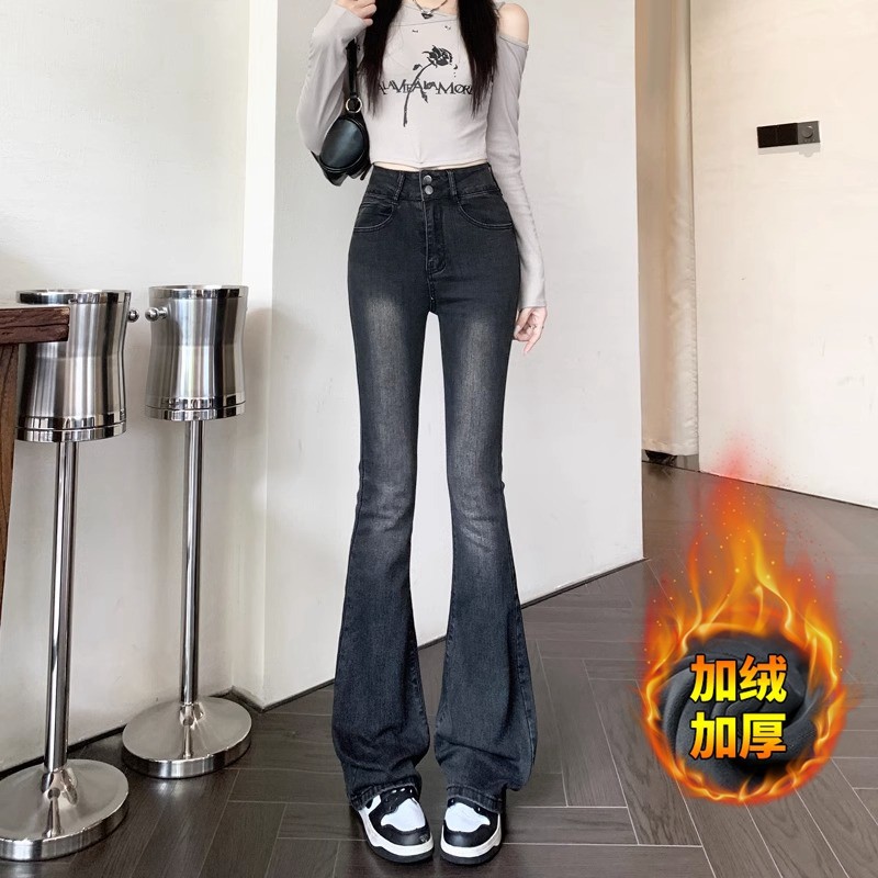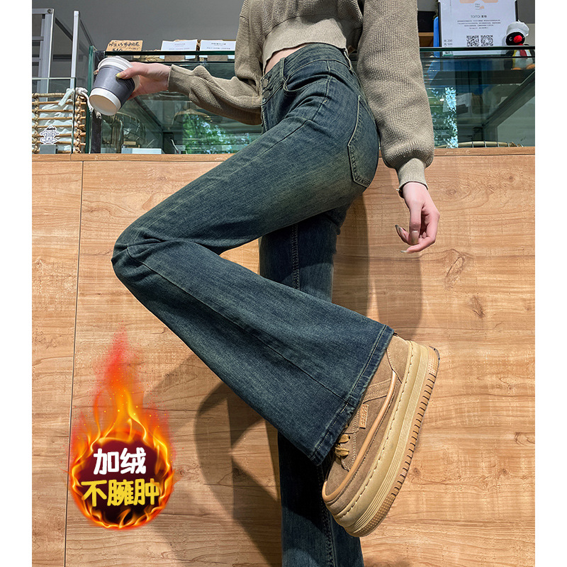 ベルベットの厚いレトロなジーンズの女性の広脚ジーンズの女性の冬の新しい港の味の小柄なストレート保温ズボン