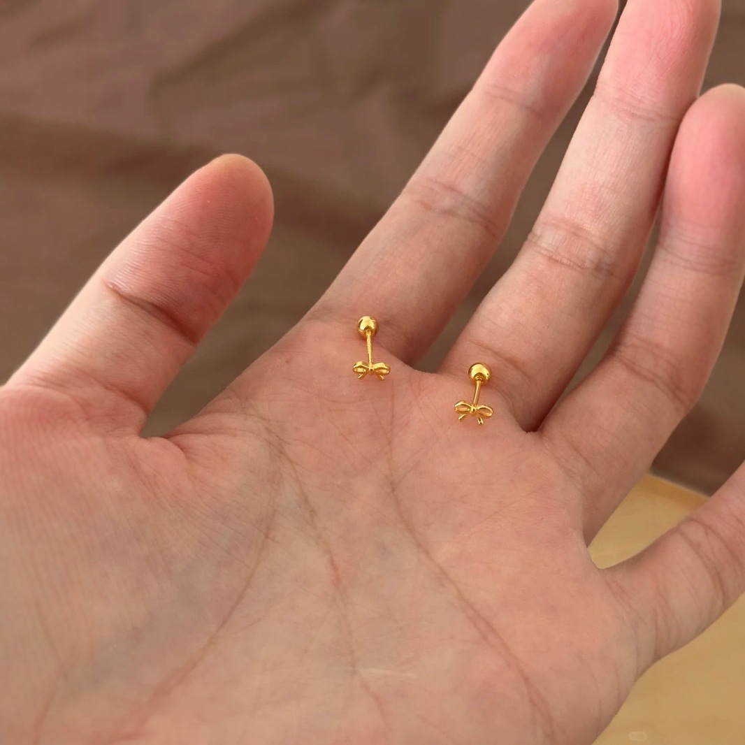 S999純銀銀針金色蝶ネクタイイヤリングmini耳骨釘気質女性ねじミニ高級感通勤
