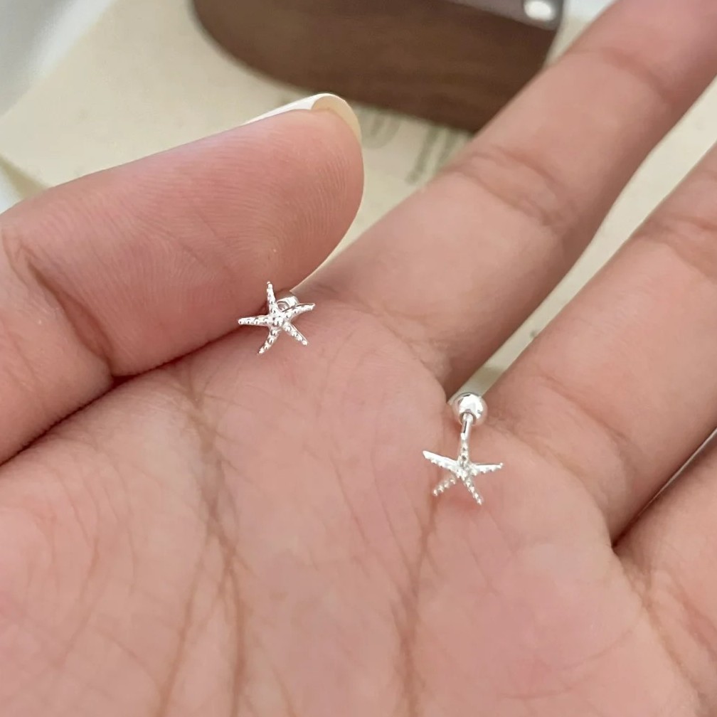 S999银针海星耳钉女简约气质养耳洞耳饰螺丝小众设计耳环批发代发