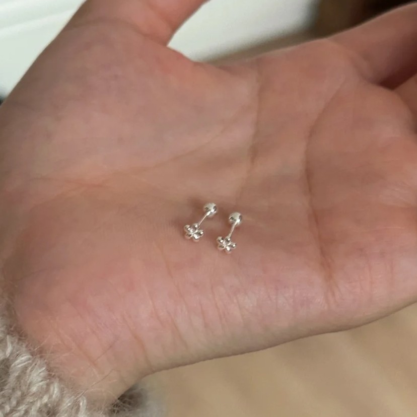S999純銀針mini小花ねじ締めピアス甘い小清新耳骨釘小衆デザイン耳飾り