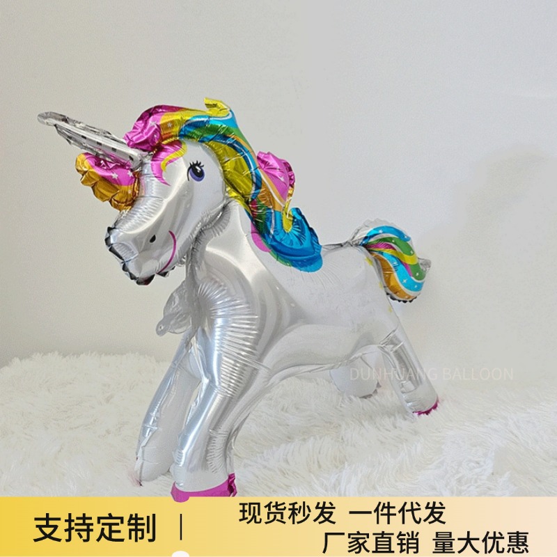 国境を越えた虹色の馬3D立体風船、子供用ユニコーン漫画パーティーデコレーションアルミフィルム誕生日おもちゃ飾り