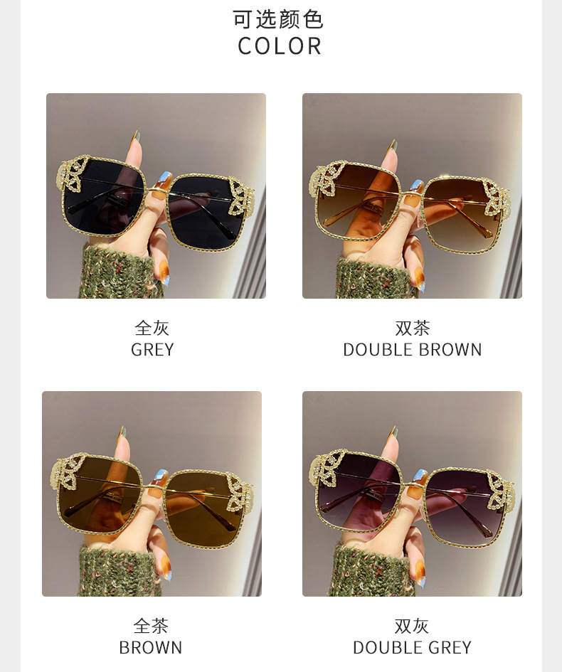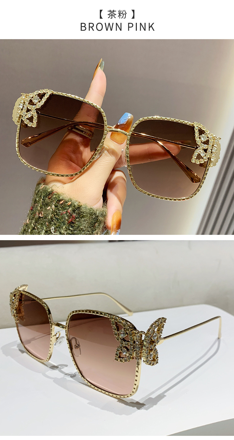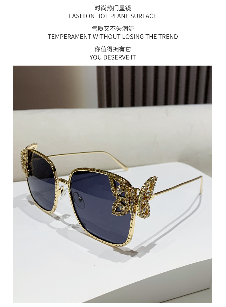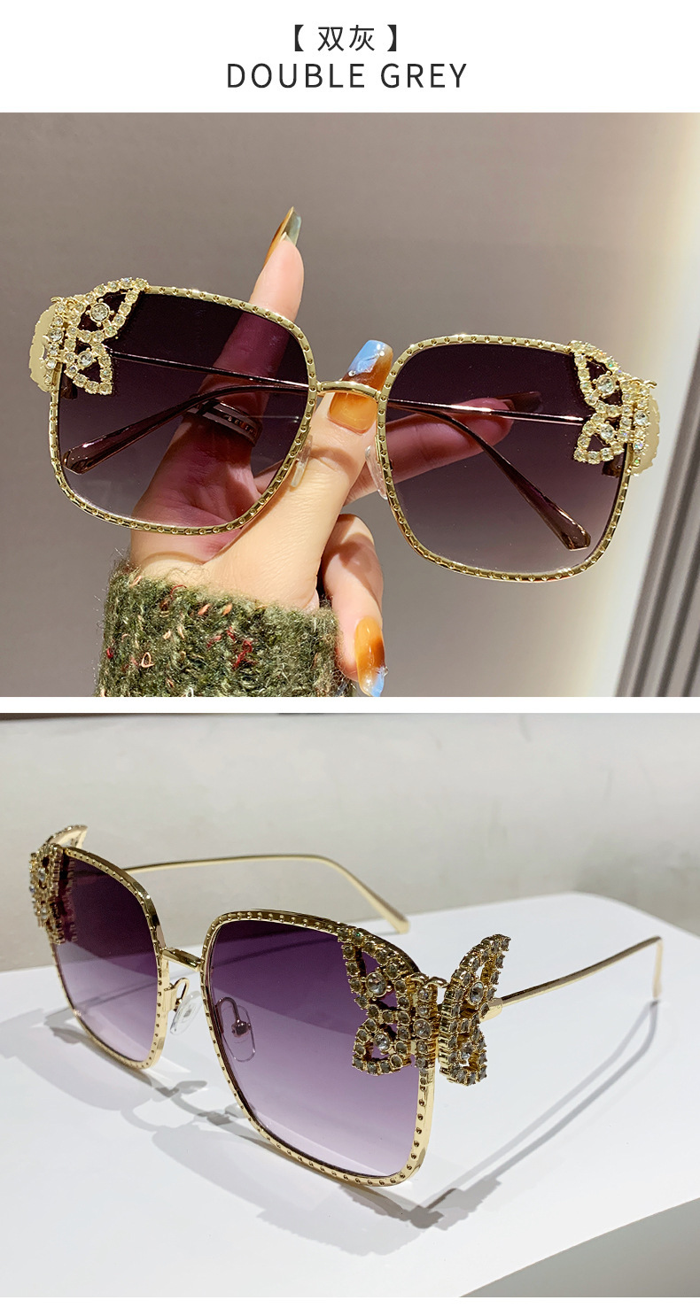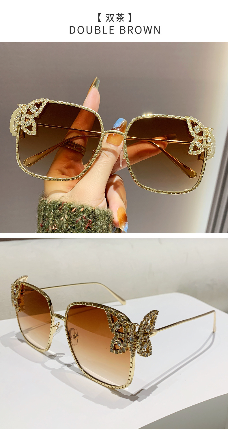 2025新型の精巧な蝶のサングラス欧米のファッションはダイヤモンドのサングラスの女性の四角形の大きい枠の軽い豪華なメガネを入れます。