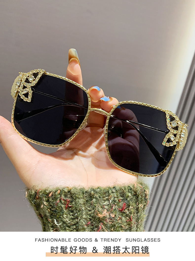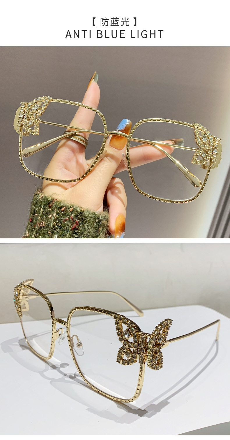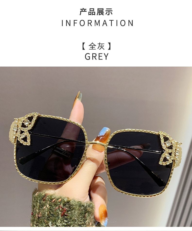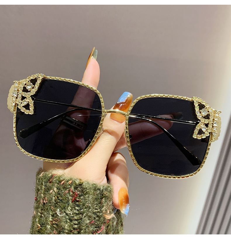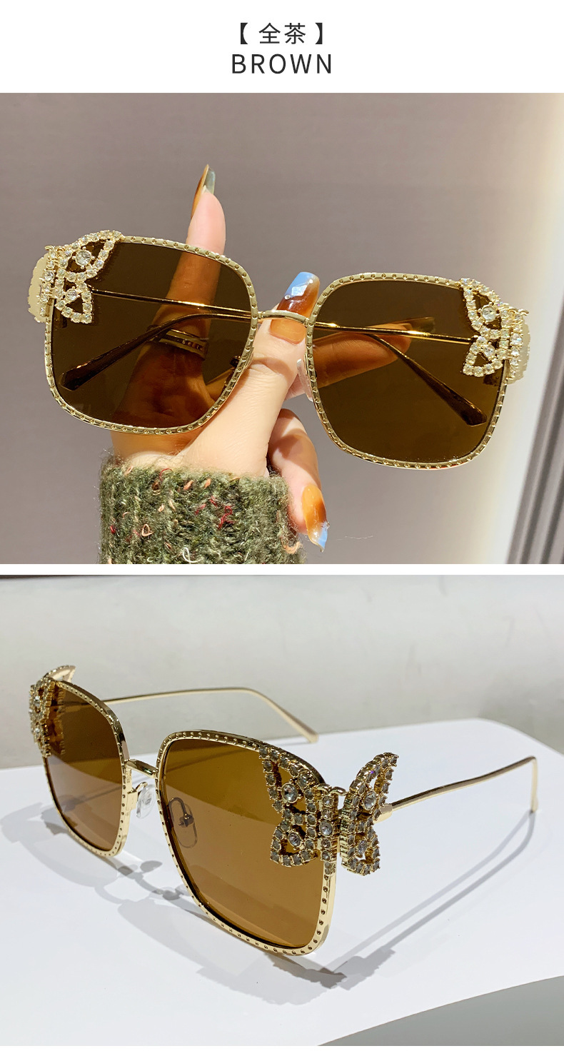 2025新型の精巧な蝶のサングラス欧米のファッションはダイヤモンドのサングラスの女性の四角形の大きい枠の軽い豪華なメガネを入れます。