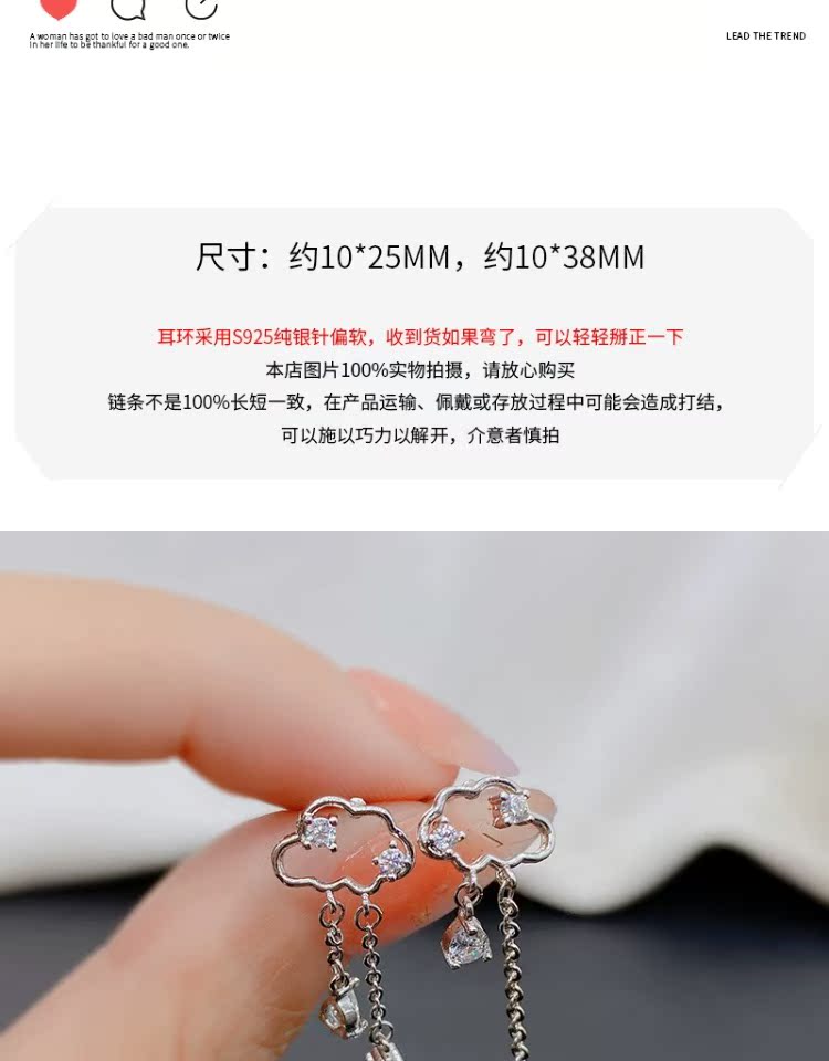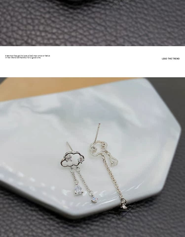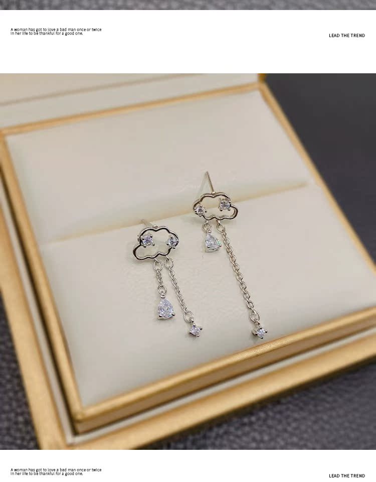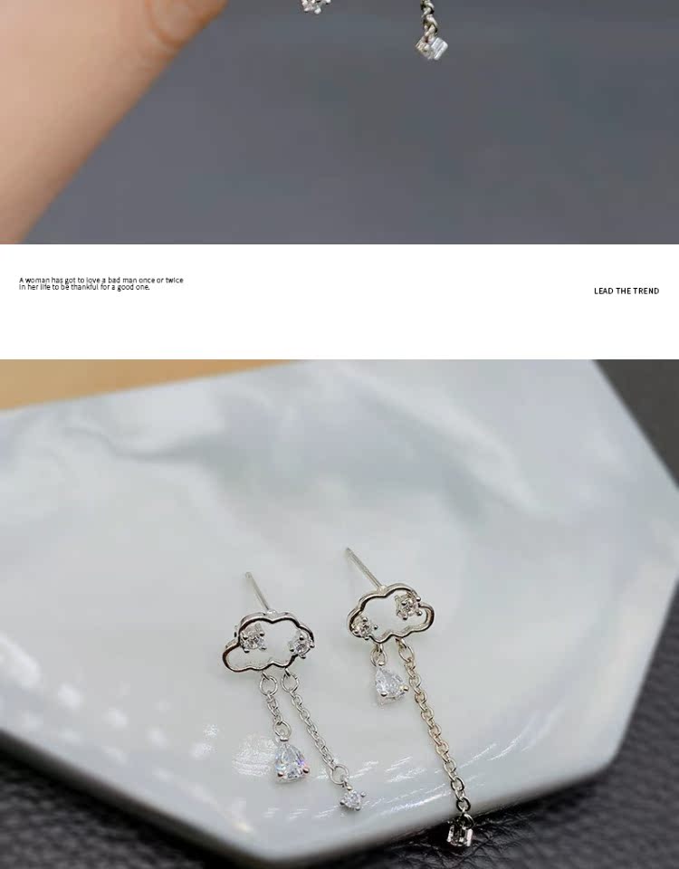 シンプルな大衆気質雲流蘇イヤリング女性S925純銀針ファッション個性百合デザイン感耳飾り