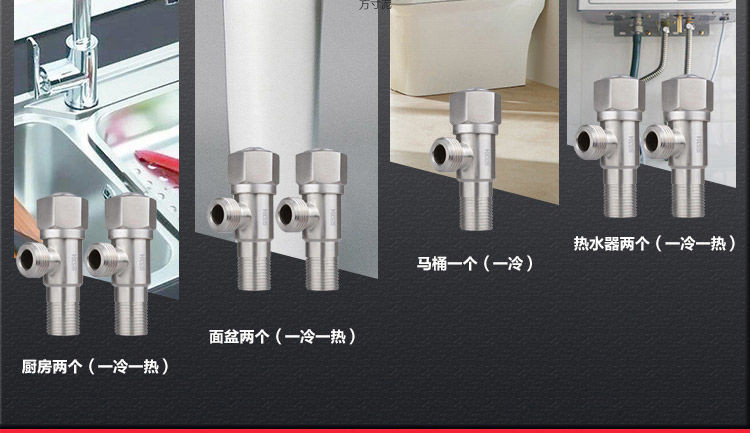 三角バルブ304ステンレス鋼製蛇口冷温水給湯器バルブ分水器一入一出止水弁
