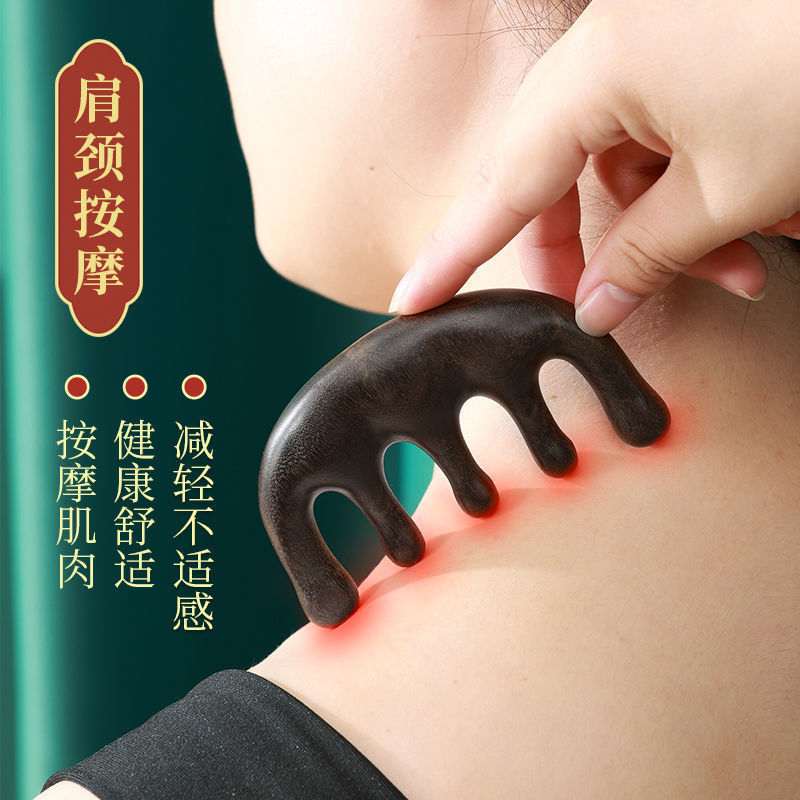 五爪金糸檀木頭部マッサージ櫛経絡摘通神器頭皮リンパ養生道具五指ブラシ