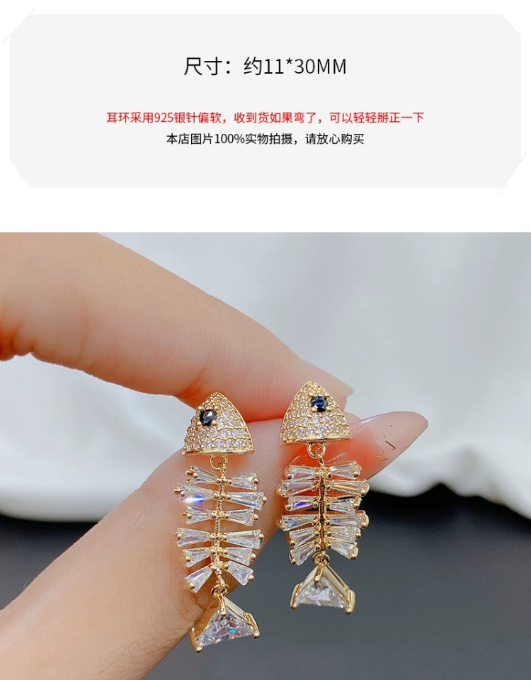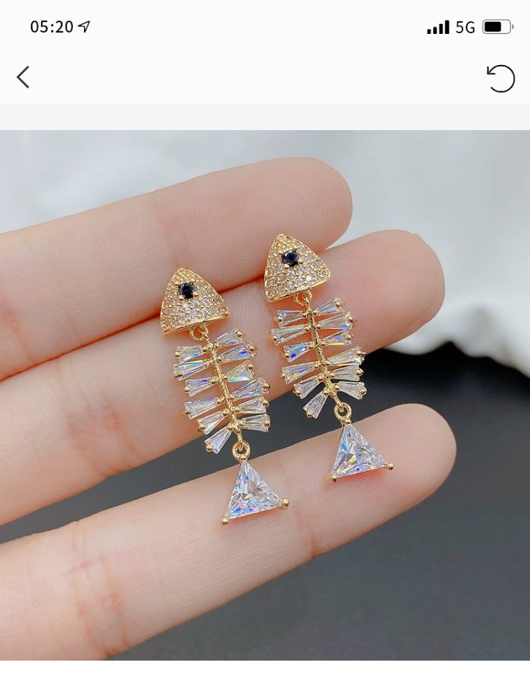 小型ジルコンの魚の骨のイヤリングの個性はシンプルで冷たい風の耳飾りは軽くて豪華な個性のアイデアネットの赤いピアスの女性です。