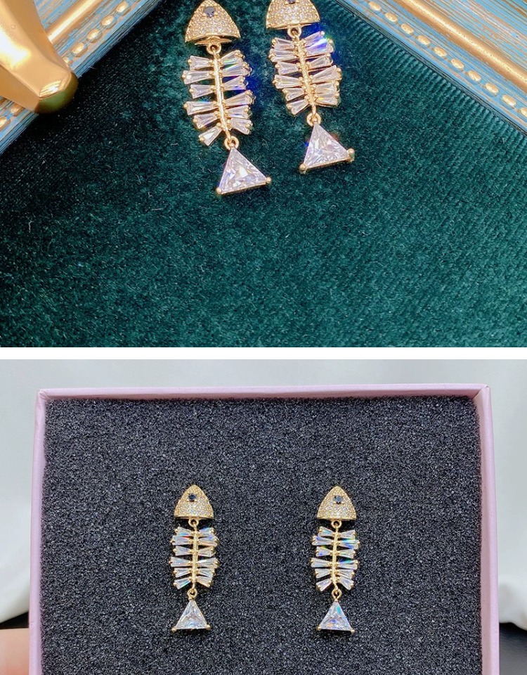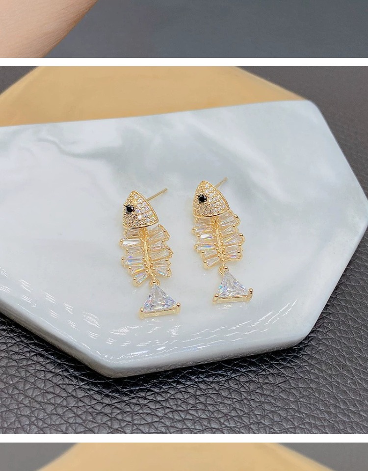 個性的なアイデアはジルコンの魚の骨のイヤリングをまねます。