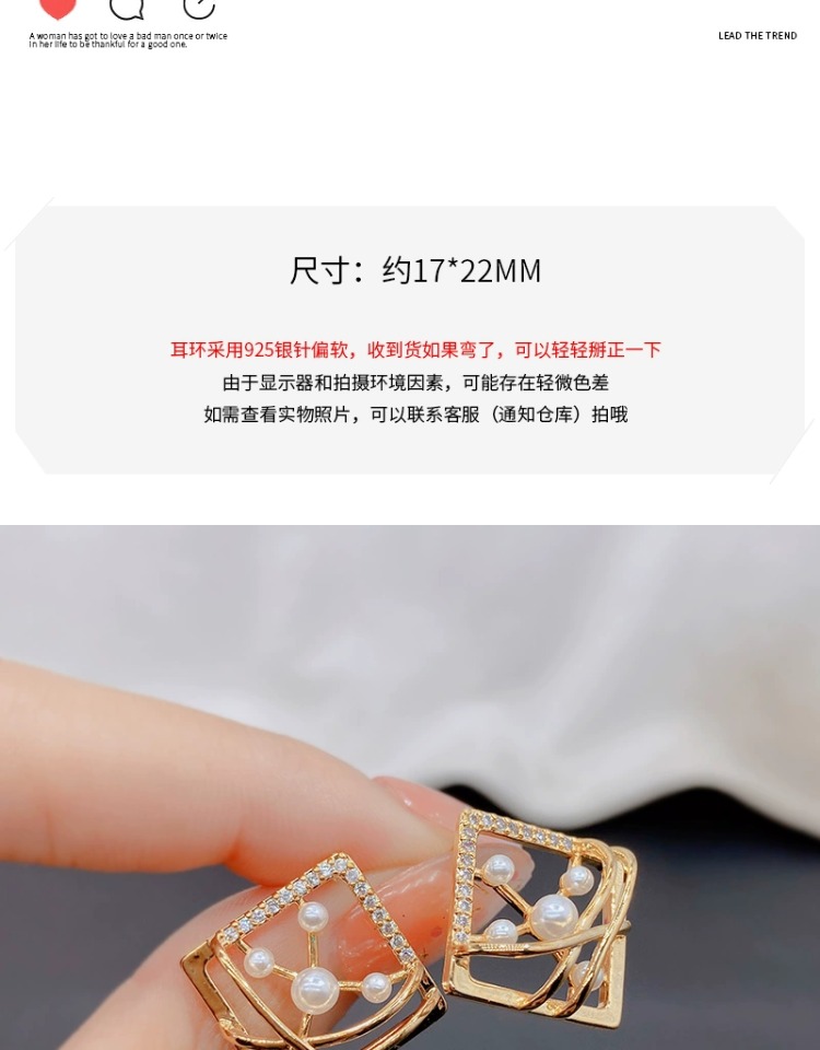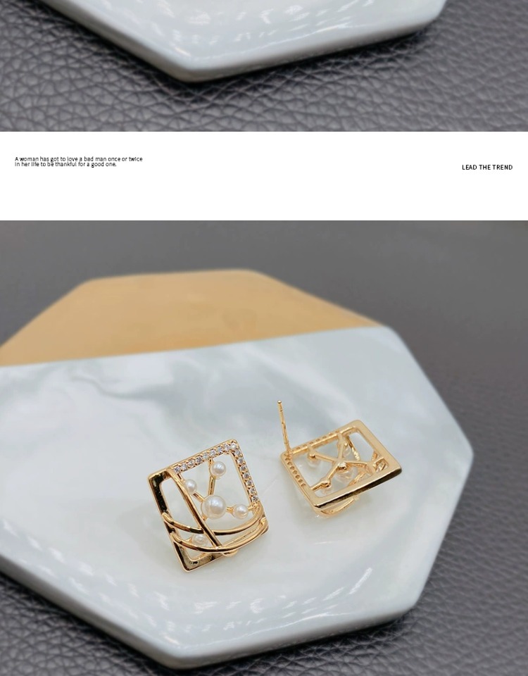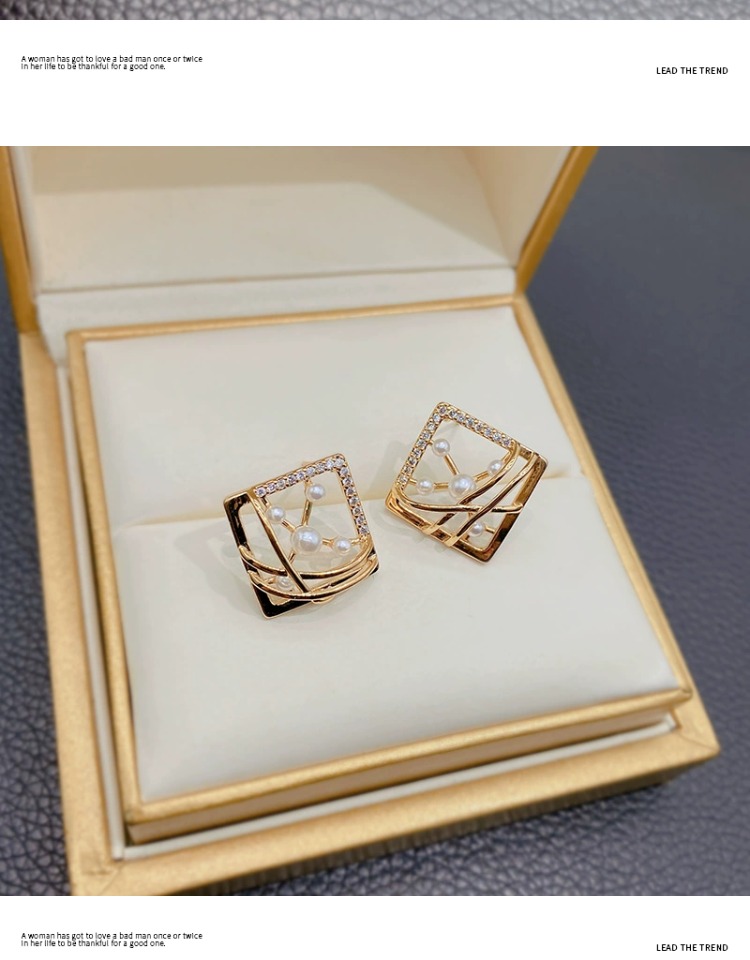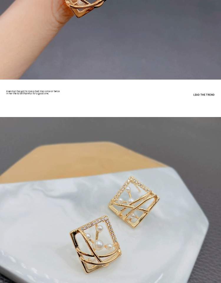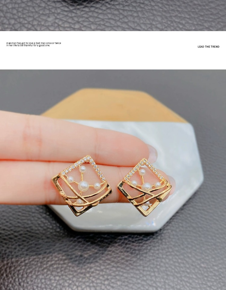 レトロで洗練されたファッションの四角い鳥の巣真珠イヤリング女性の個性的な大衆気質ピアス