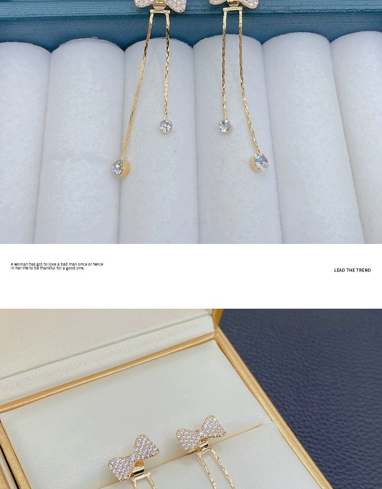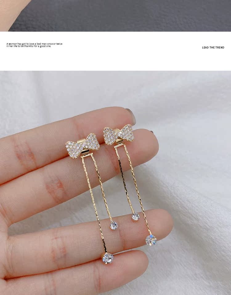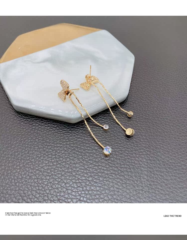 蝶結びの長いタイプのフリンジペンダントのイヤリングの女性の個性の1項の2つの精致なイヤリングのファッションの韓国版のファッションの耳飾り