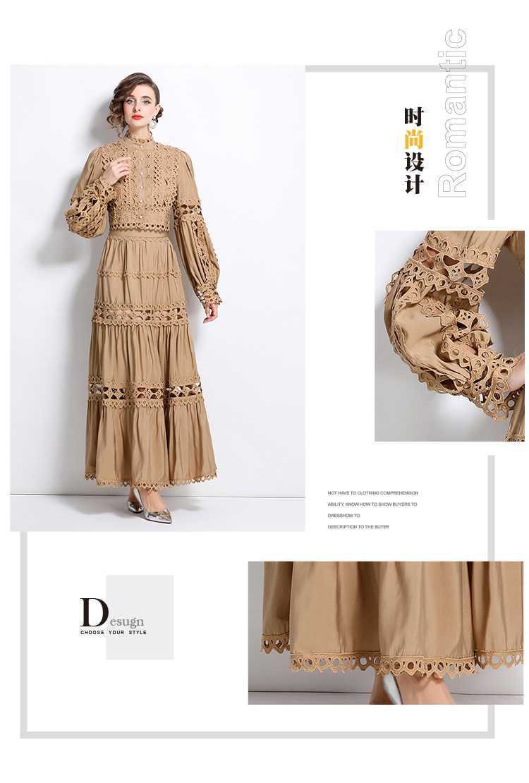 実写スポット秋装新型深vネックラッパ袖プリント長型大振りワンピース