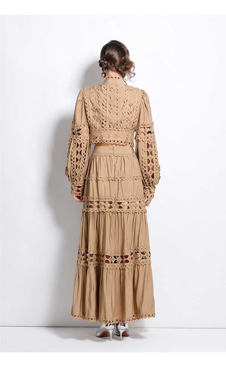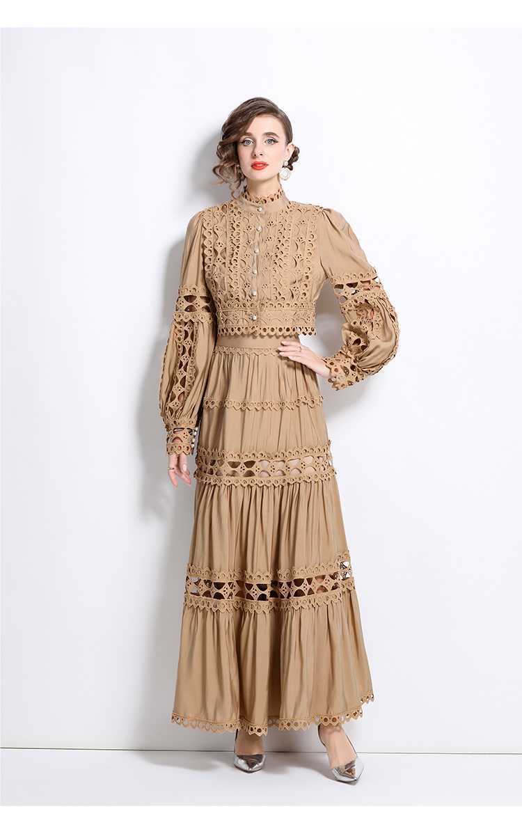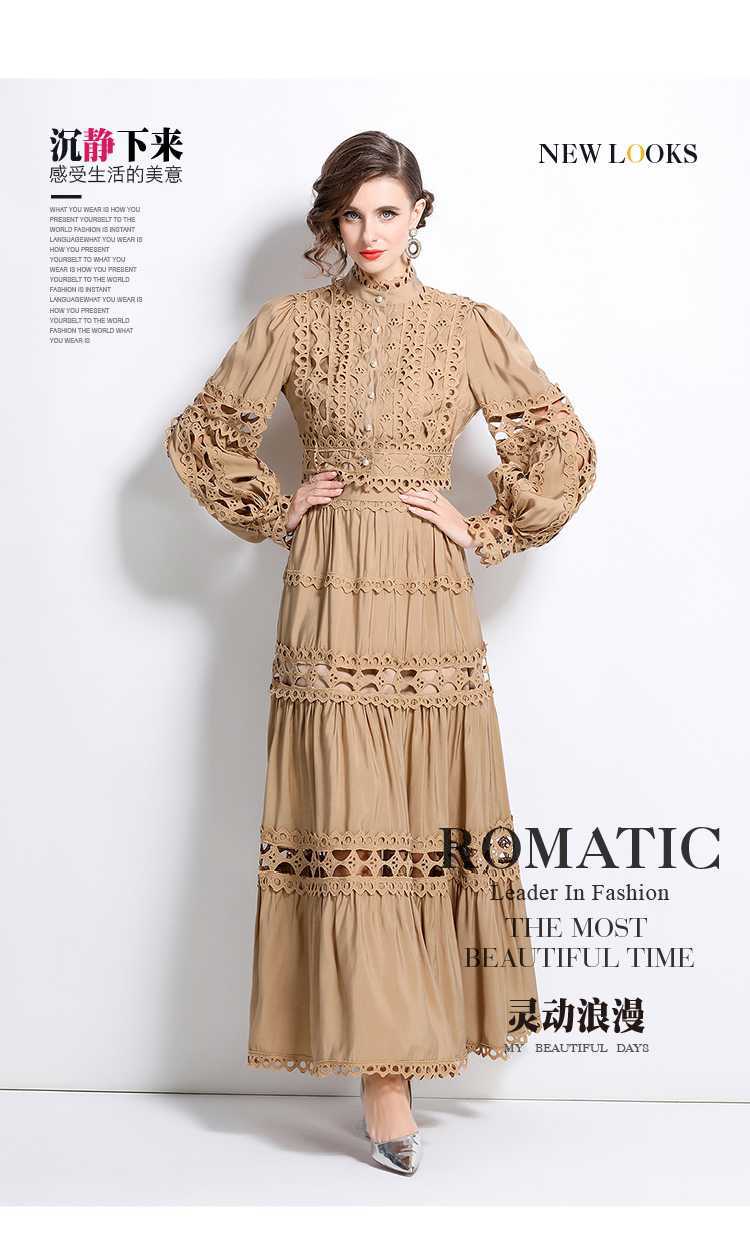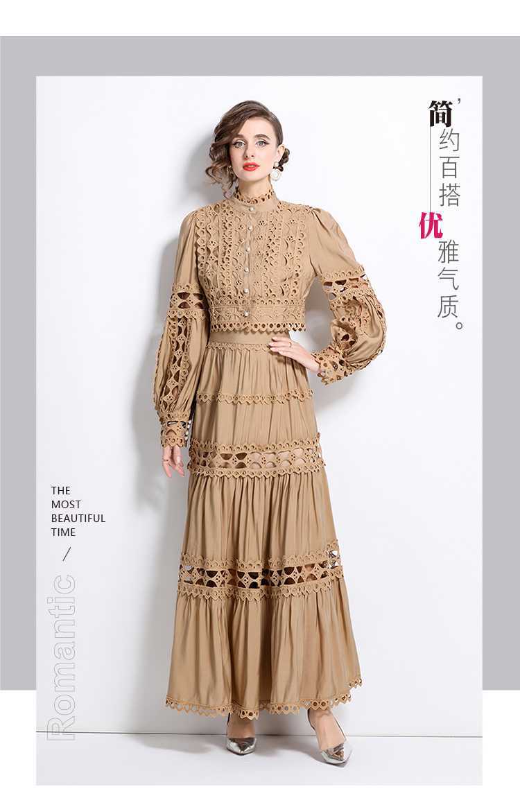 実際に現物の新型iフレンチレースを撮影して、長い長袖の短い上着の高腰の半身のスカートのロングスカートのスーツをつなぎ合わせます。