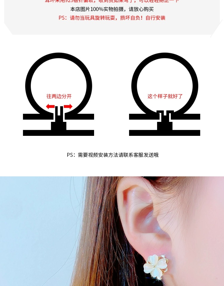 韓国版個性ひまわりイヤリングS925銀針ピアス東門デザイナーの耳穴のない透明な耳クリップ