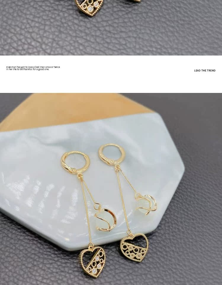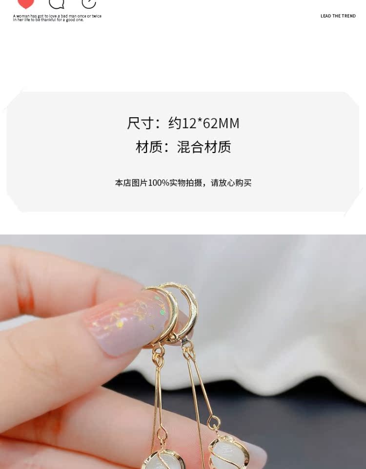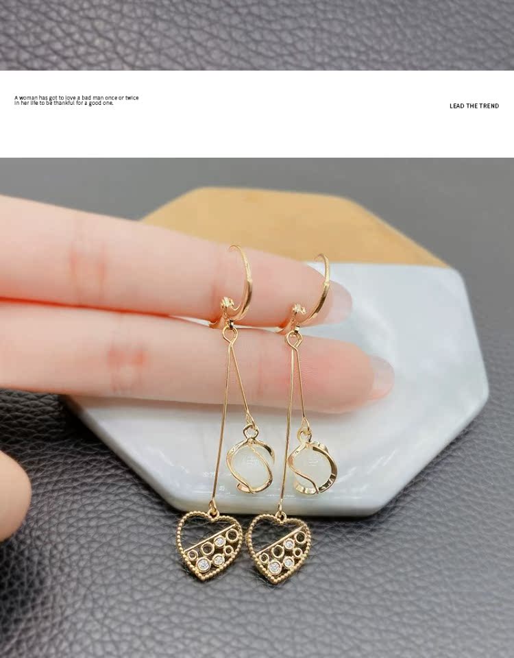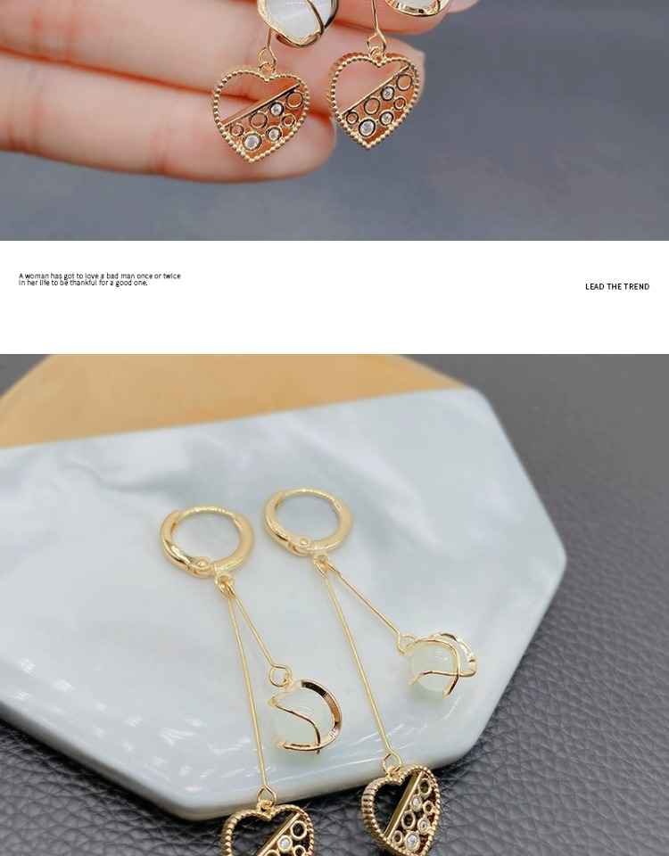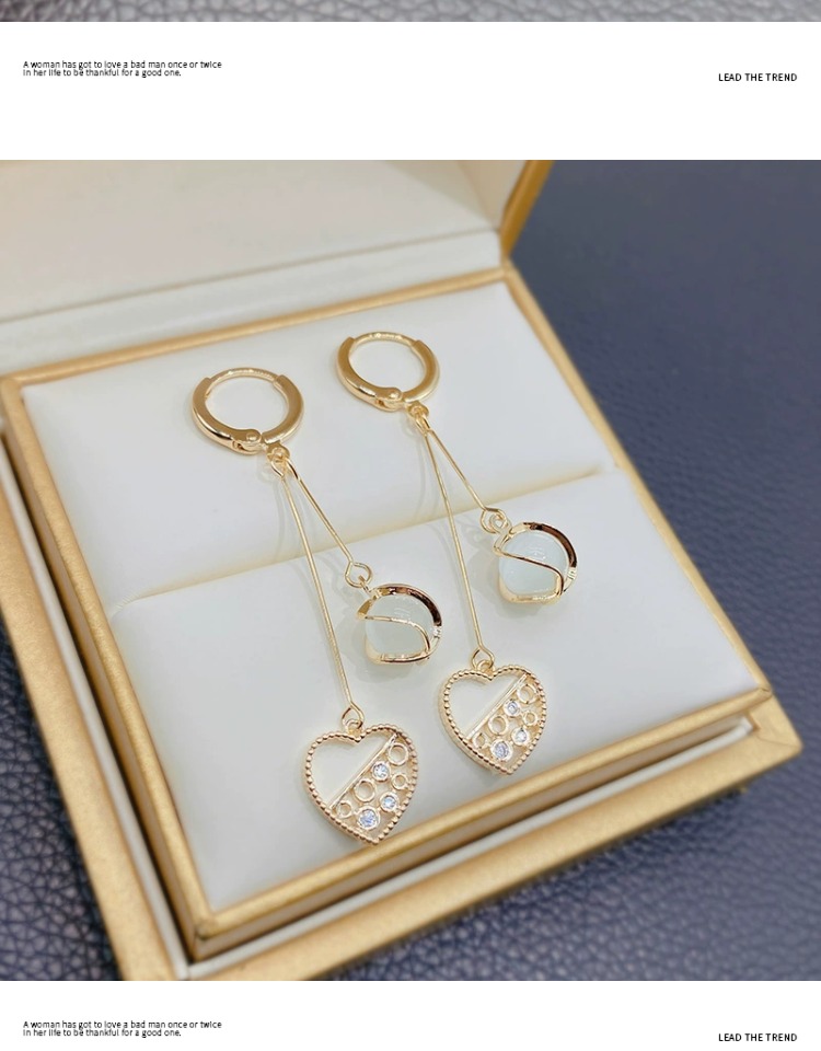 韓国の百合の精巧な愛の猫の目の石の長いタイプのフリンジイヤリングの個性の小さい大衆は気質のイヤリングの優雅な耳飾りを現します。