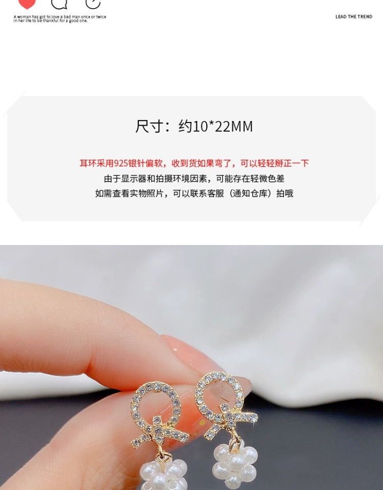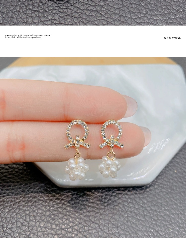 蝶結びの真珠のイヤリングの女性の韓国の甘い大衆の気質のイヤリングのイヤリングのs 925の純銀の針は軽くて豪華な高級感があります。