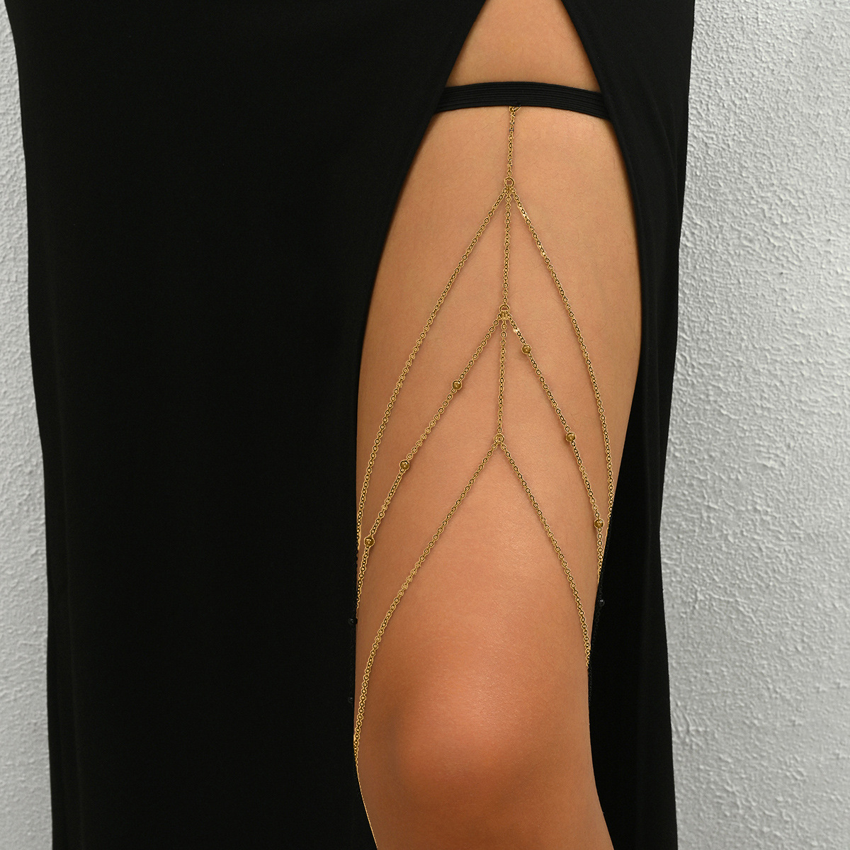 欧米のクロスボーダーのアクセサリーのセクシーな金属のチェーンの多層のフリンジのギャルは太もものチェーンのh 0022を飾ります。