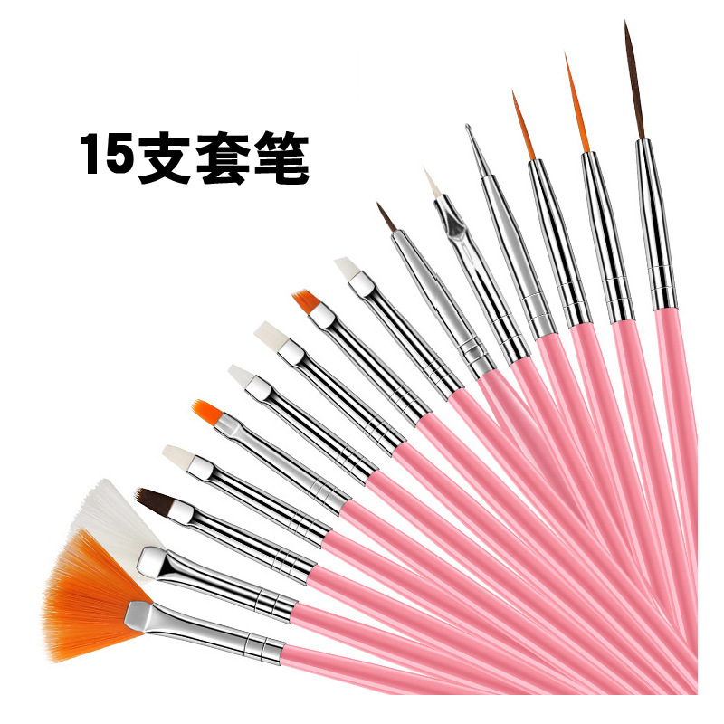 美甲工具彩绘笔美甲笔刷套装光疗笔雕花笔美甲刷笔15支套opp袋装
