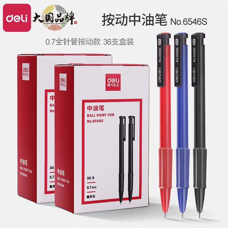 得力6546s中芯オイルペン0.7mmオフィスオイルペン押し式ボールペン水感滑らか黒青赤