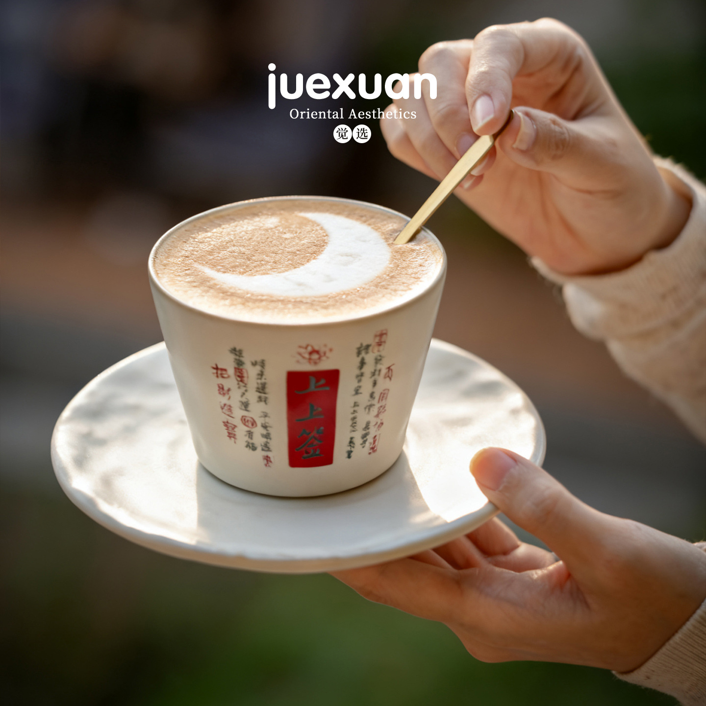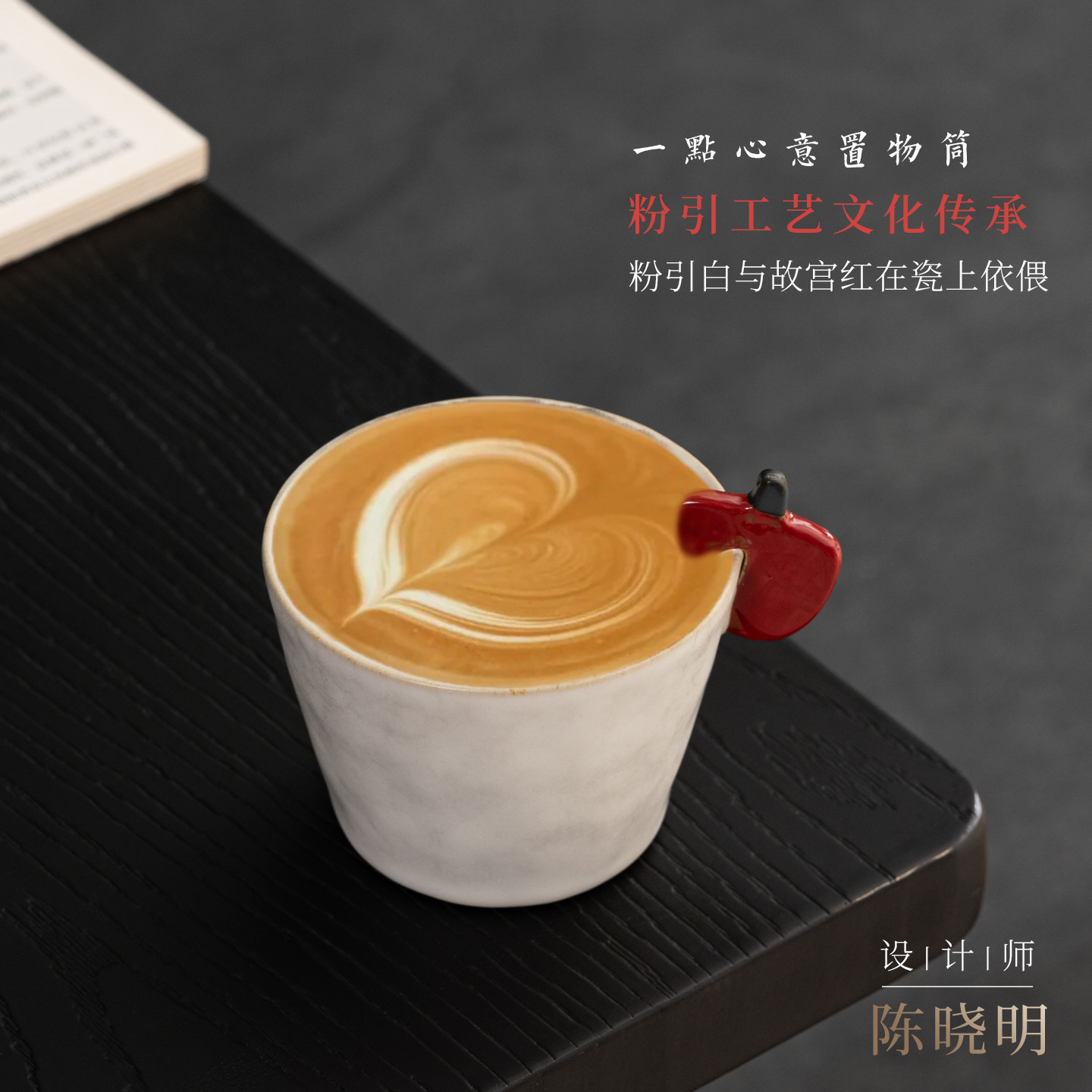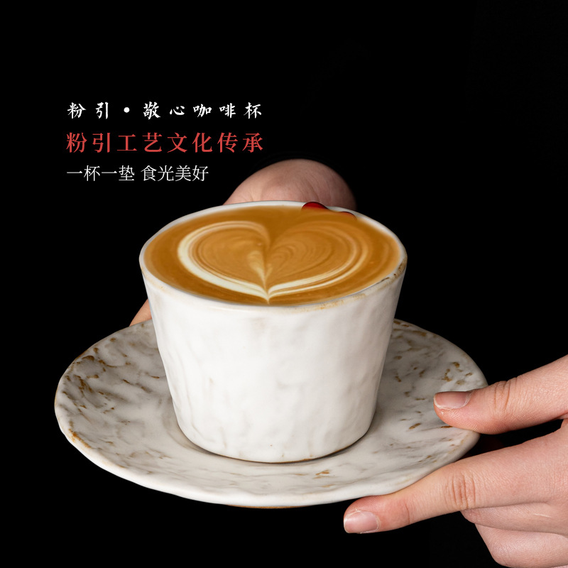 粉引咖啡杯国潮文创上上签咖啡杯碟家用办公拿铁拉花精致下午茶杯