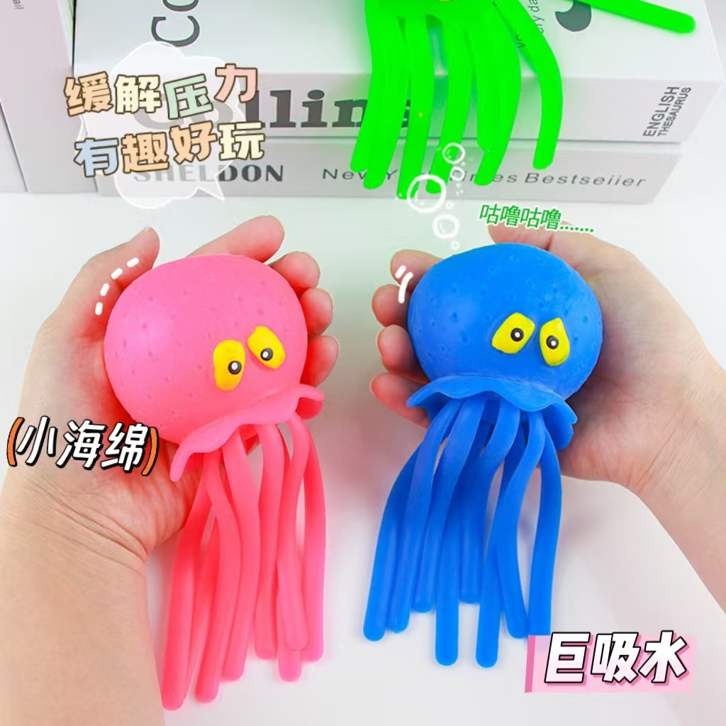 跨境海绵吸水章鱼夏日泳池戏玩水母八爪鱼小黄鸭解压玩具捏捏批发